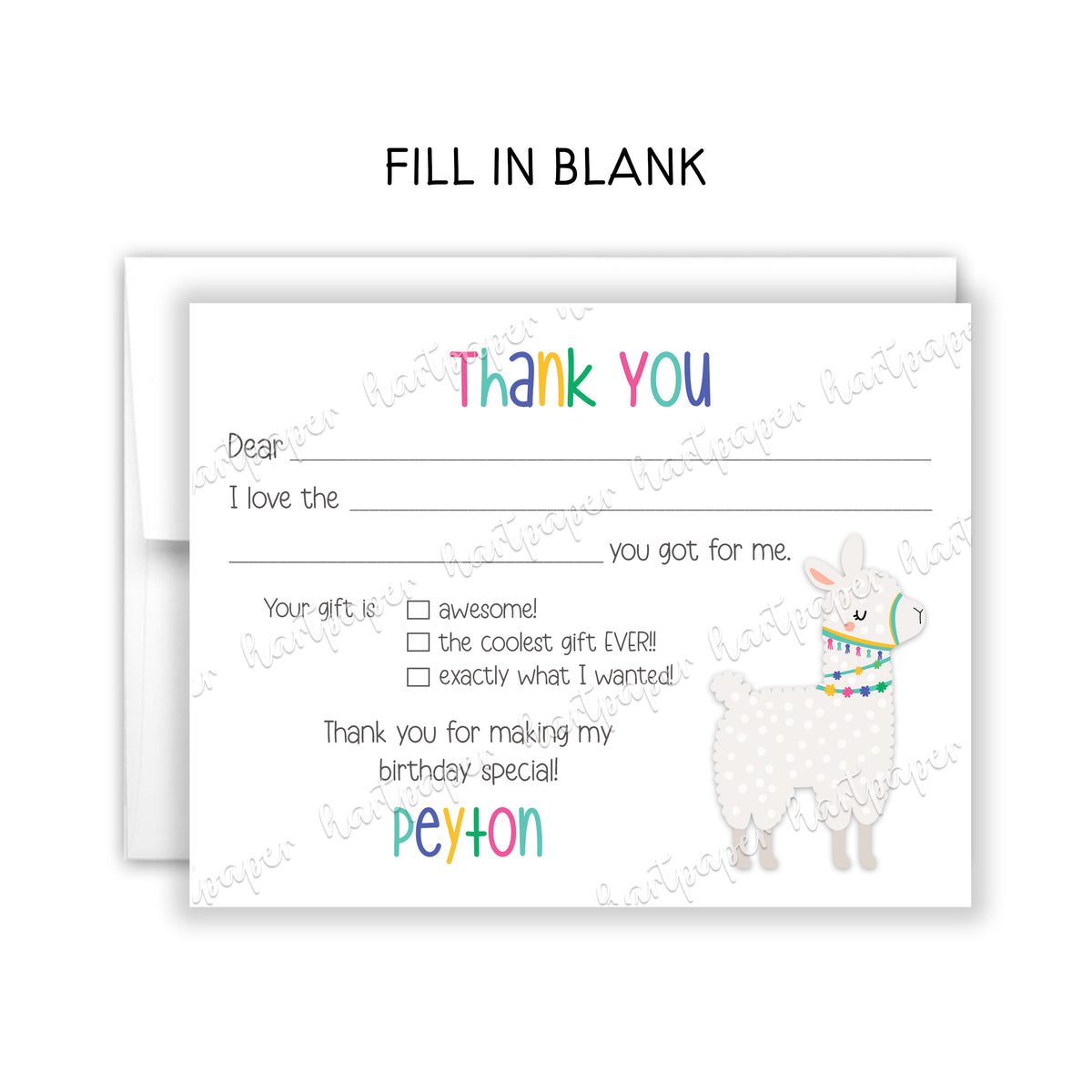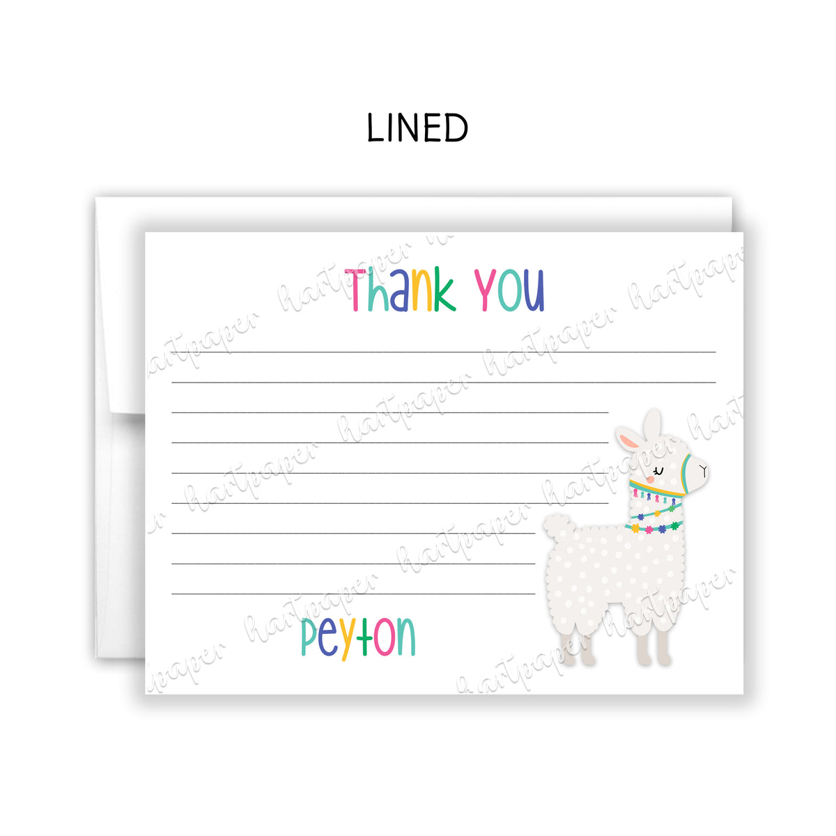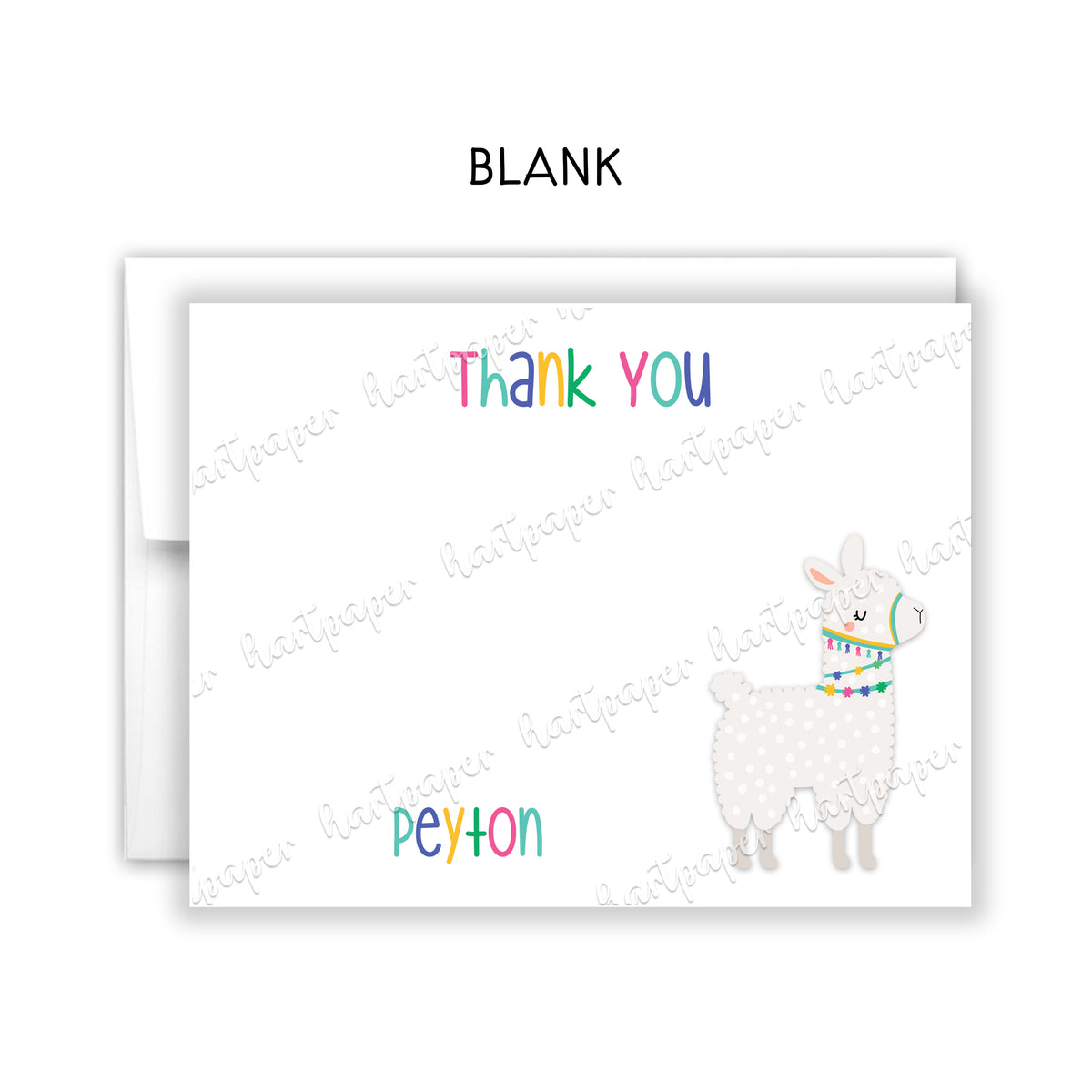 Llama Thank You Note Card Personalized Custom Stationery • Fill in Blank, Lined or Blank Cards