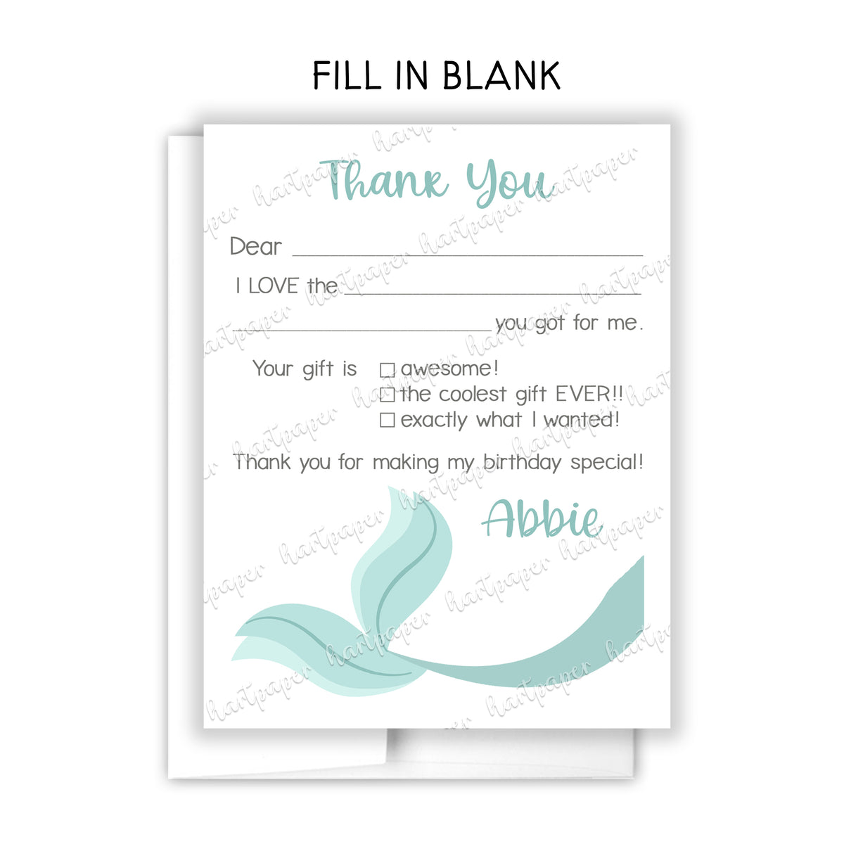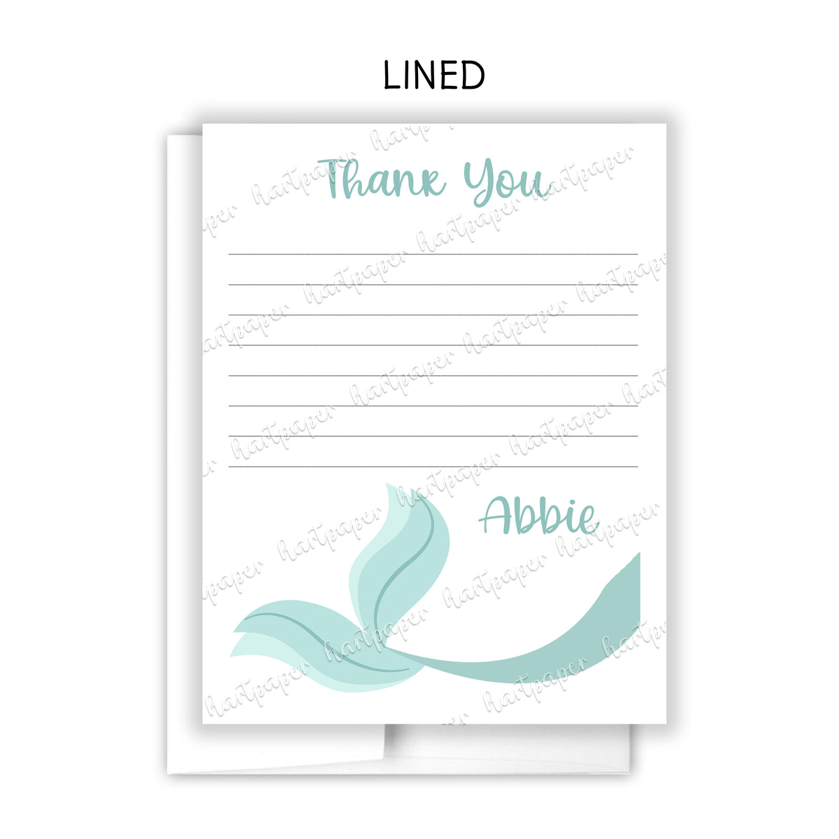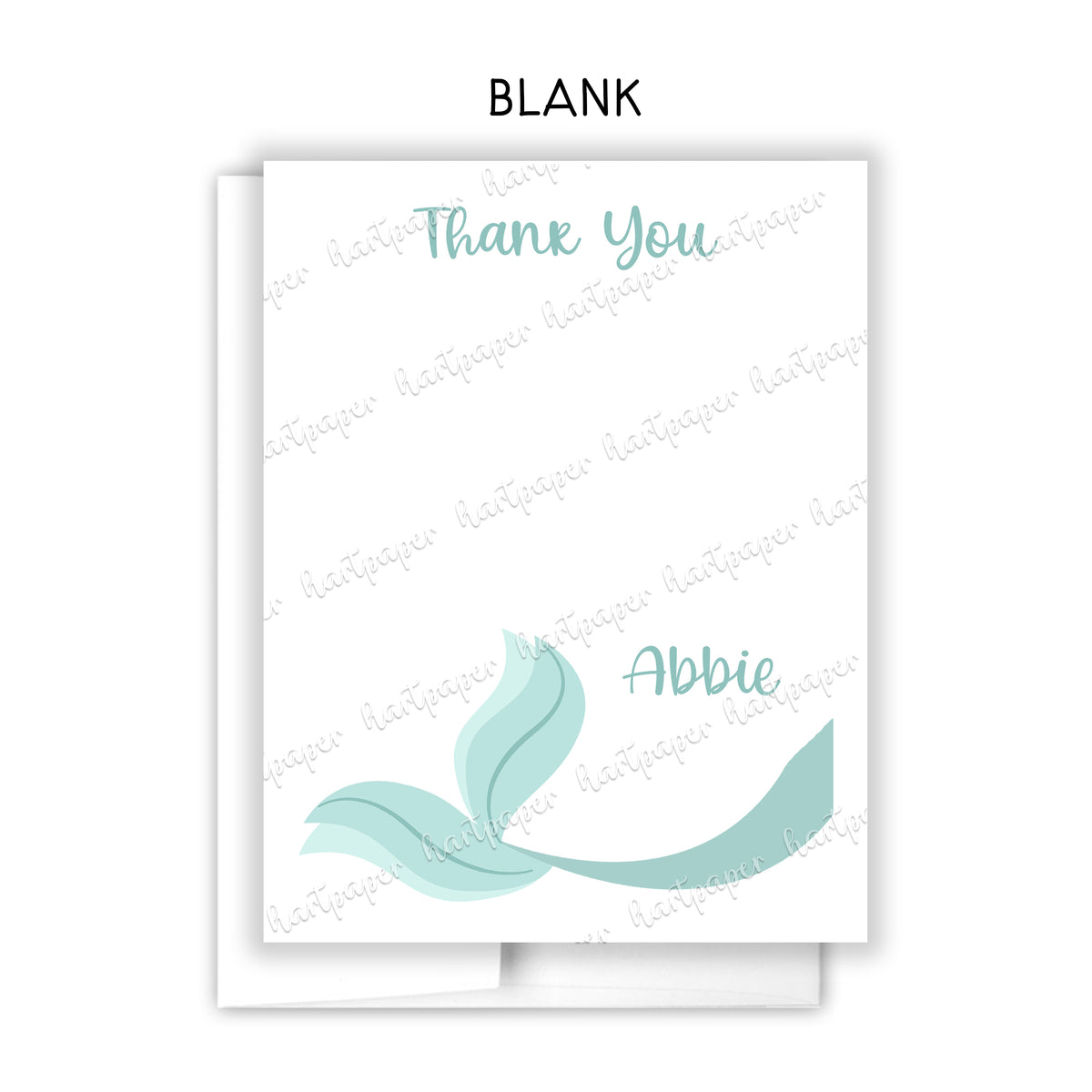 Mermaid Tail Thank You Note Card Personalized Custom Stationery • Fill in Blank, Lined or Blank Cards