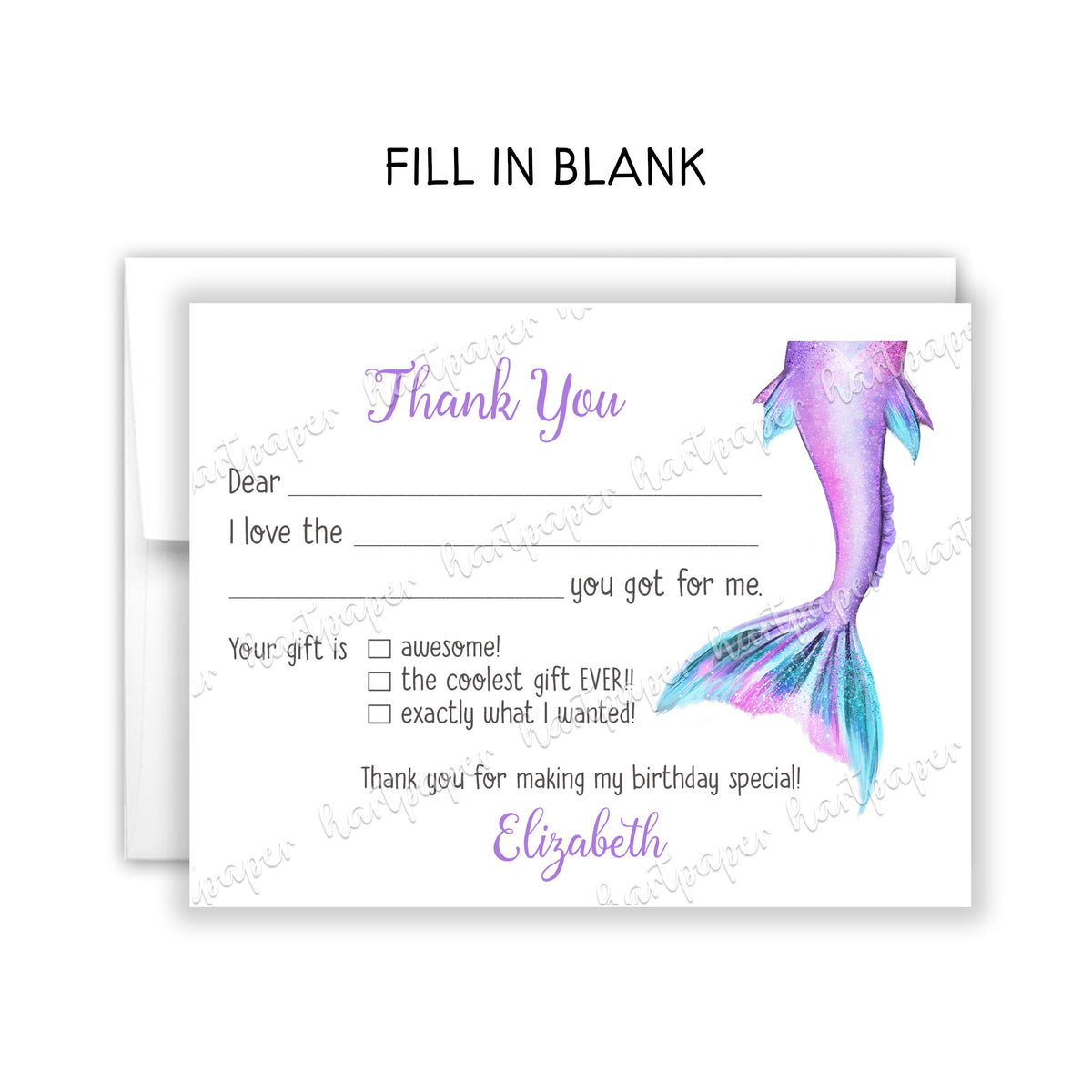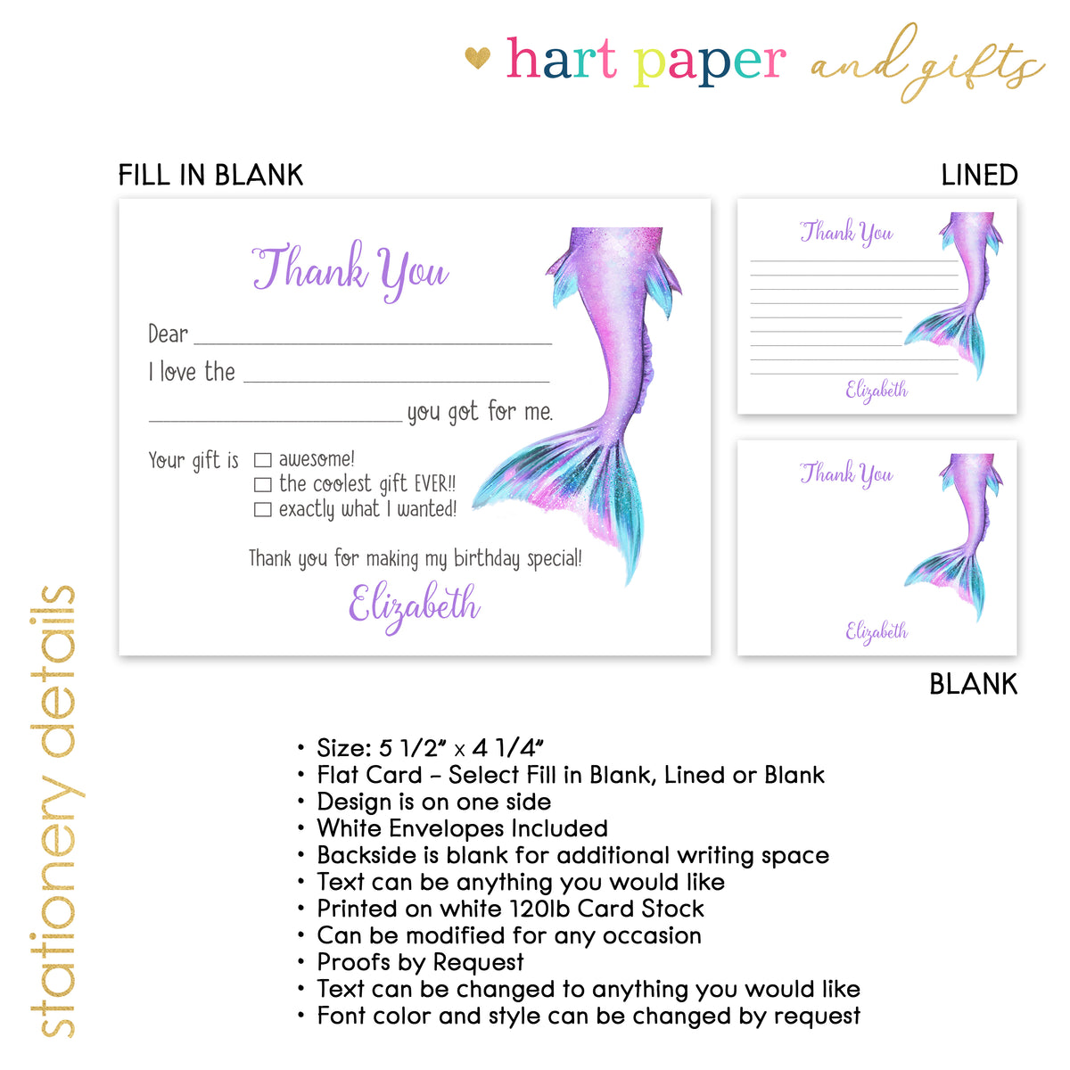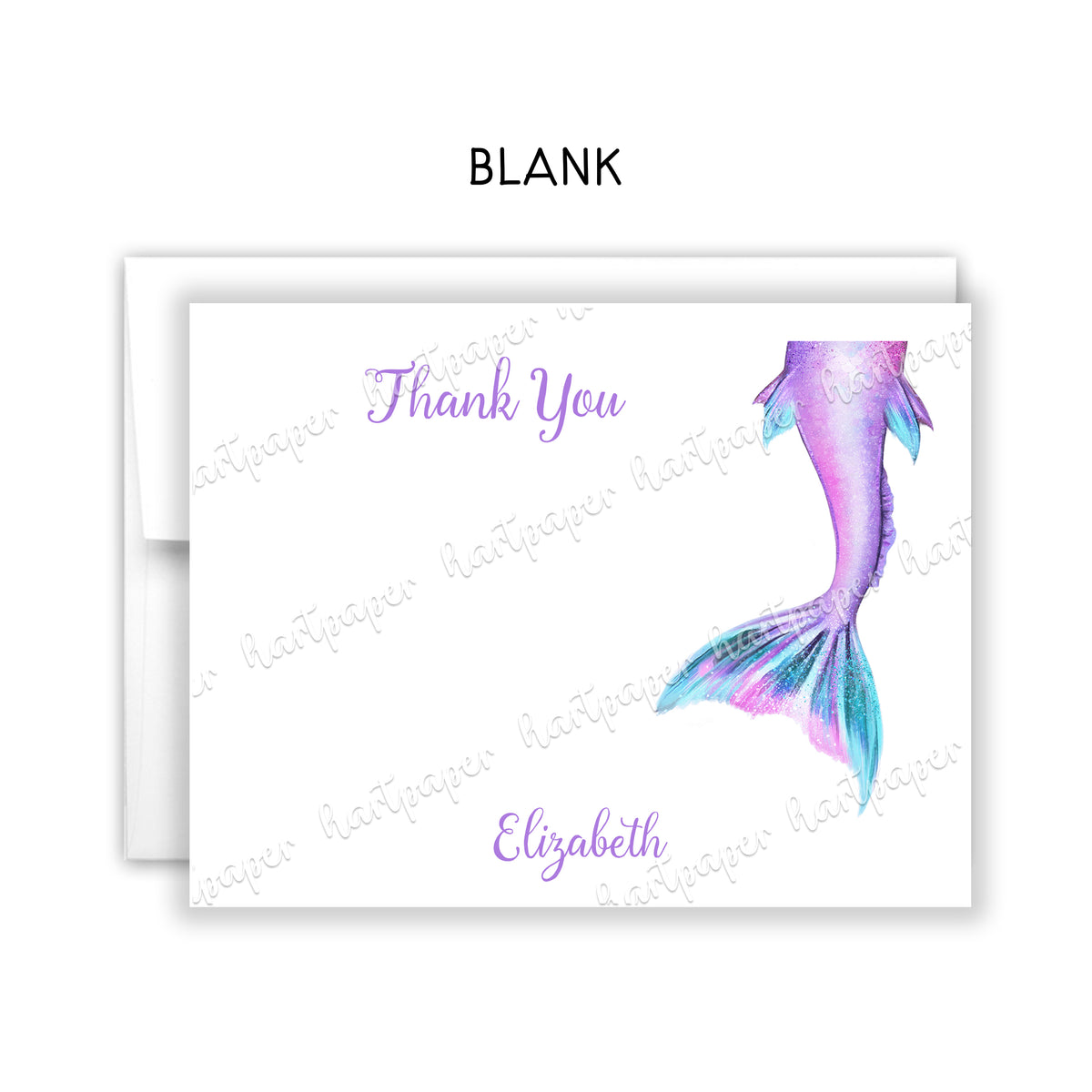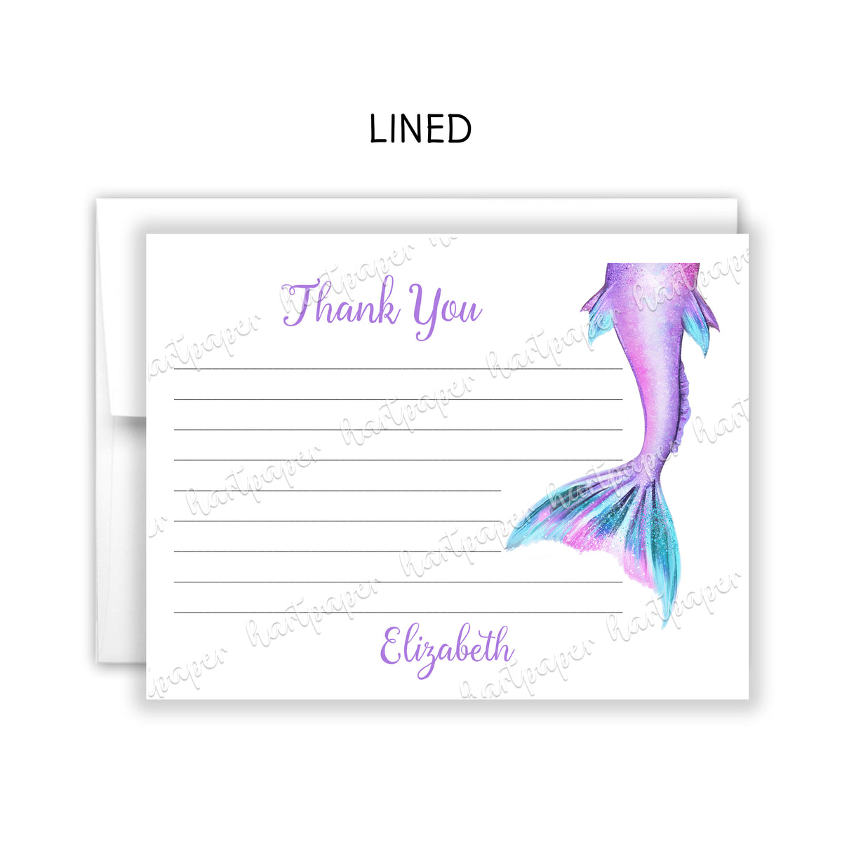 Mermaid Tail Thank You Note Card Personalized Custom Stationery • Fill in Blank, Lined or Blank Cards