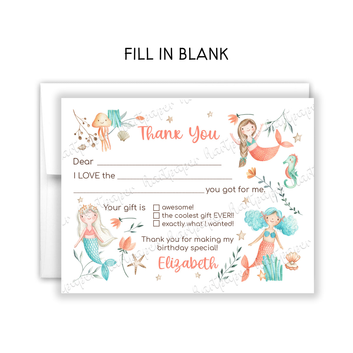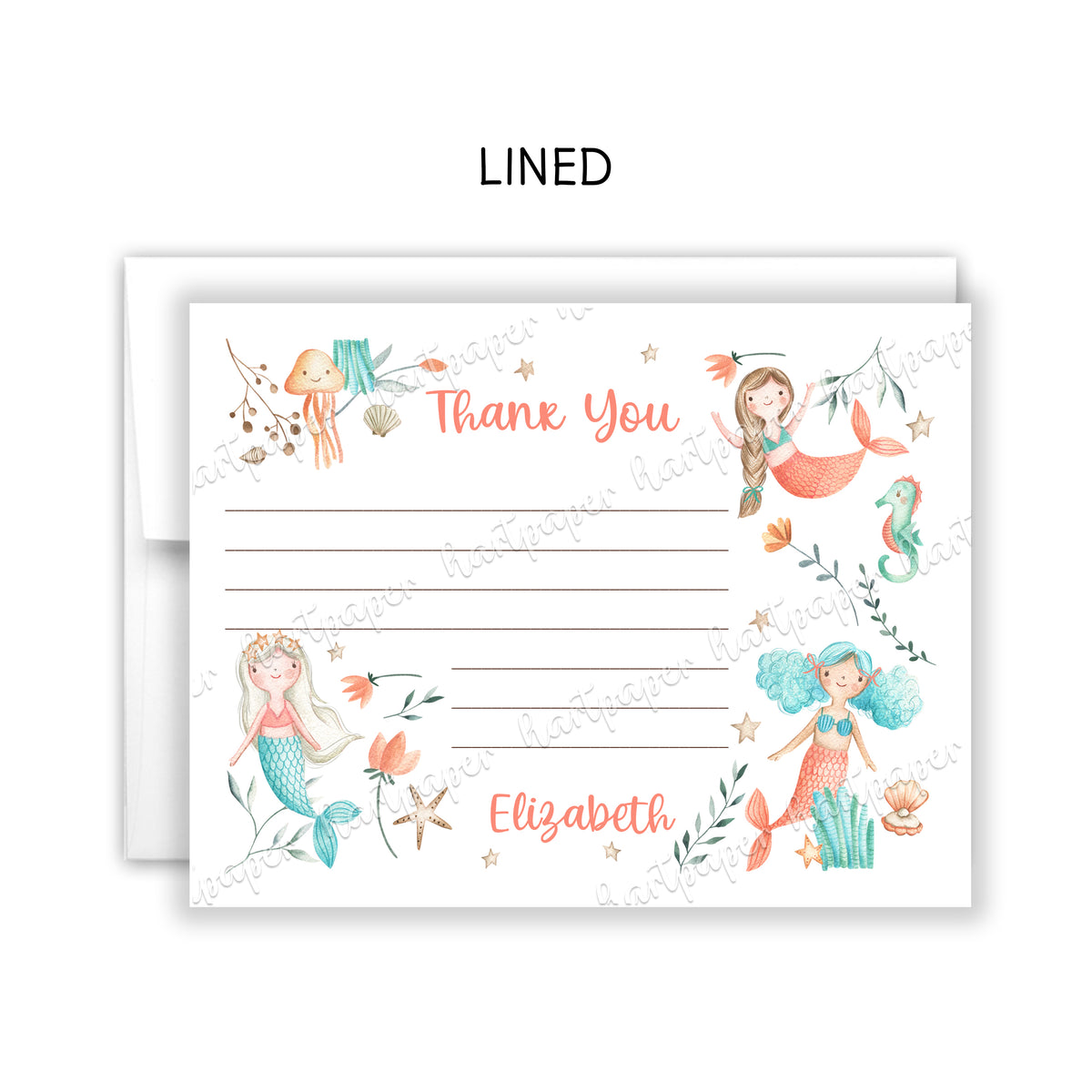 Mermaid Thank You Note Card Personalized Custom Stationery • Fill in Blank, Lined or Blank Cards