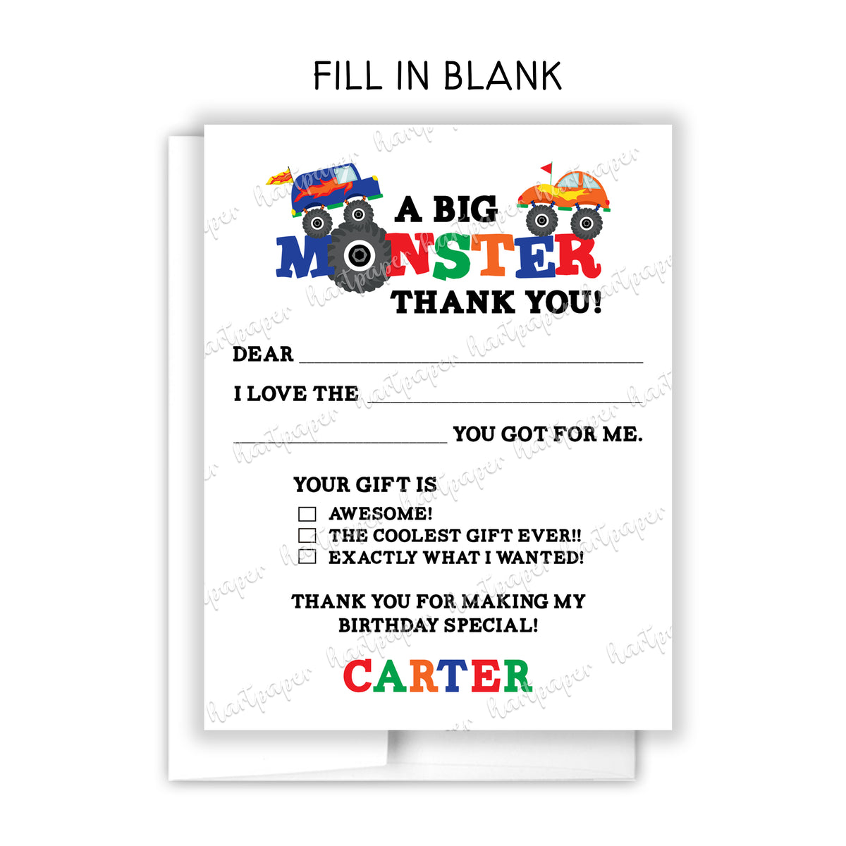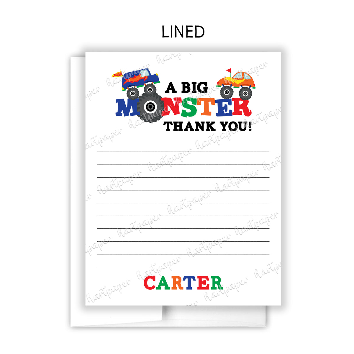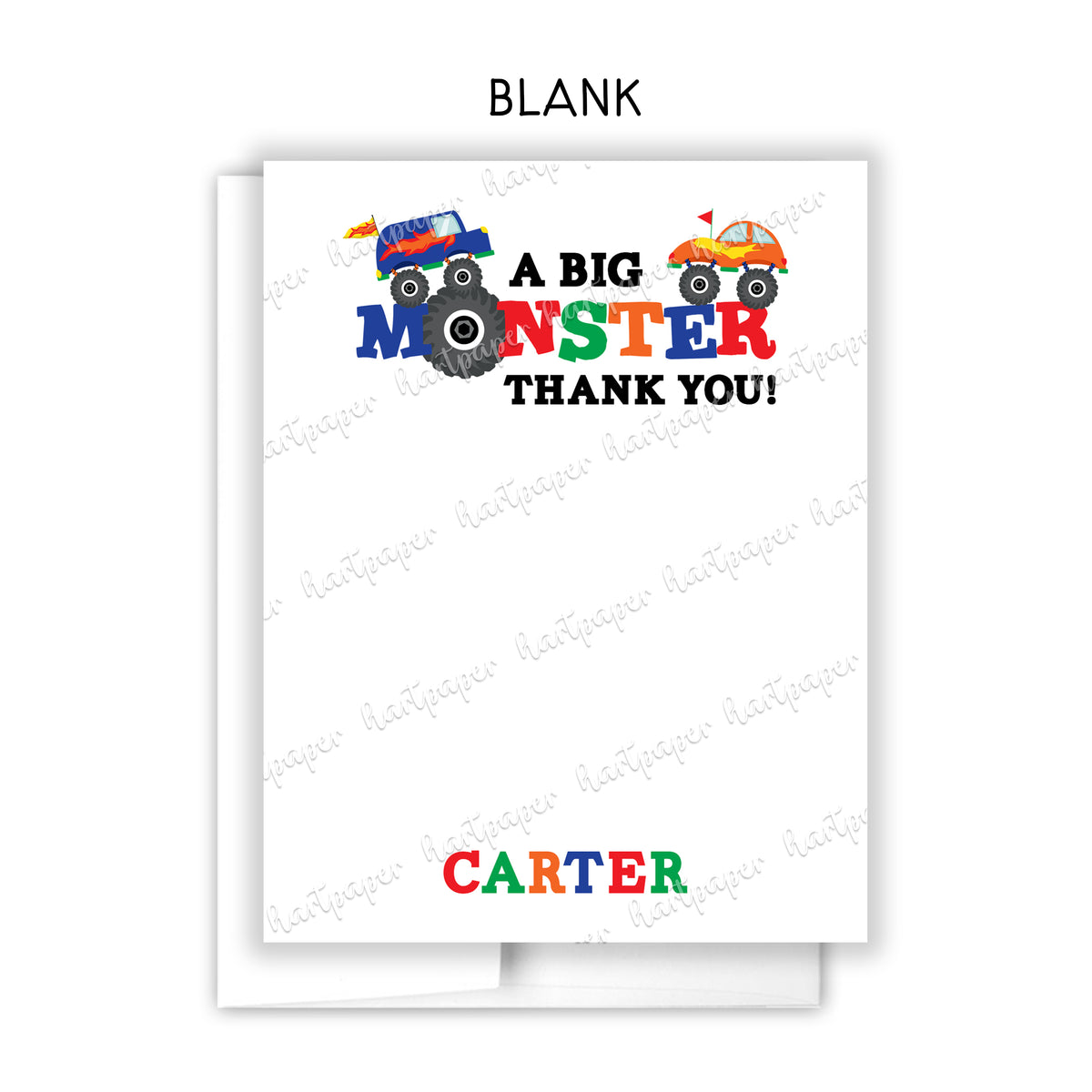 Monster Truck Thank You Note Card Personalized Custom Stationery • Fill in Blank, Lined or Blank Cards