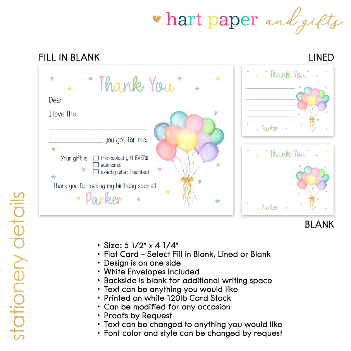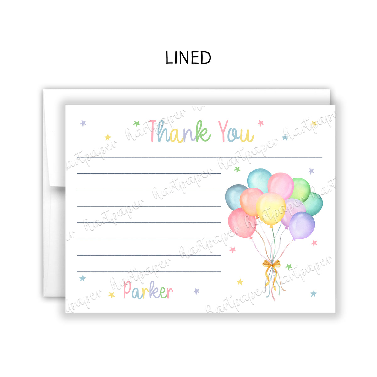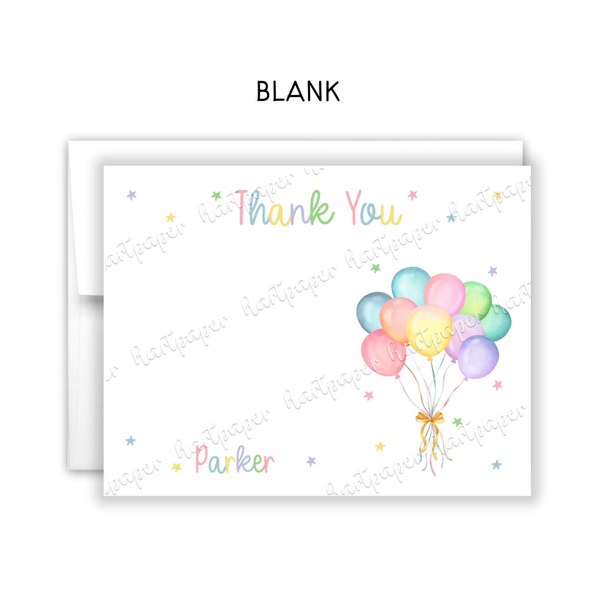 Rainbow Balloons Thank You Note Card Personalized Custom Stationery • Fill in Blank, Lined or Blank Cards