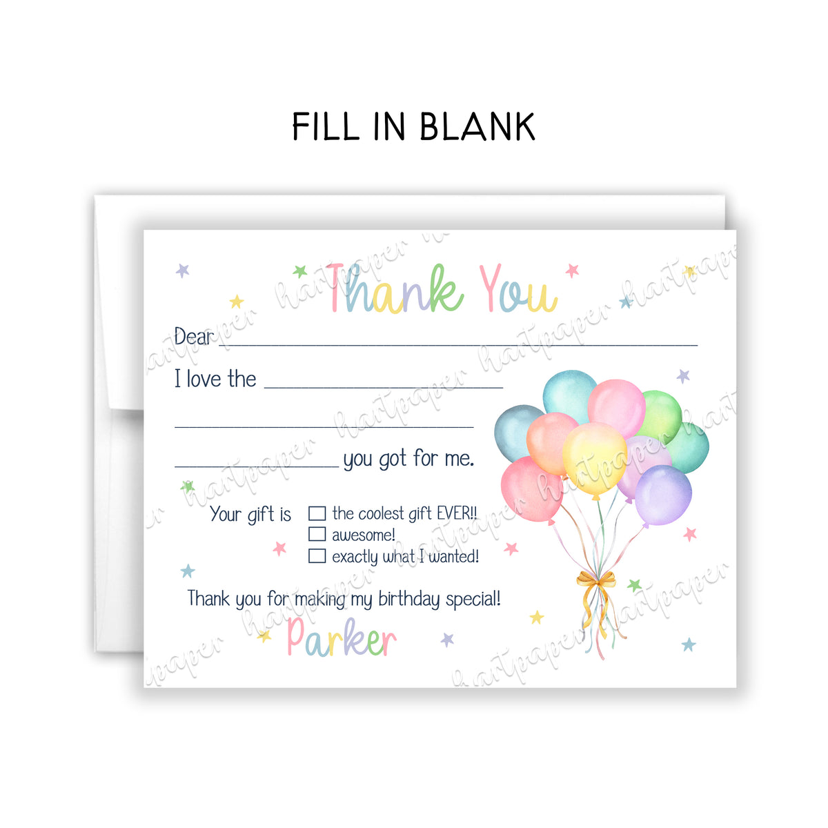 Cute & Custom Thank You + Birthday Cards for Kids – Fill-in-the-Blank, Lined & Blank Options!