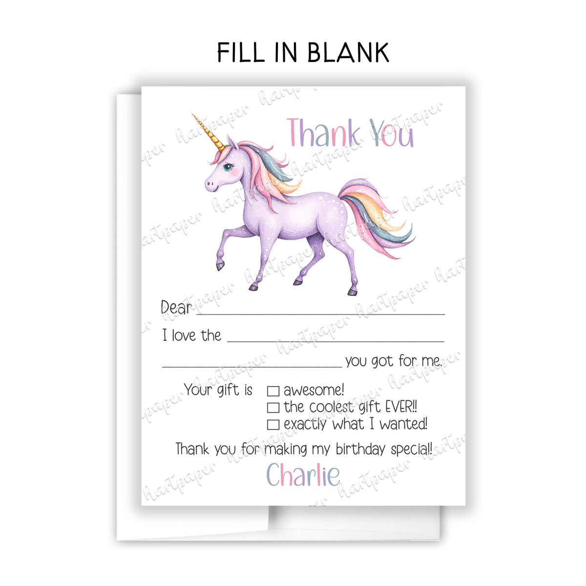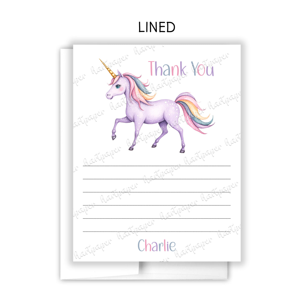 Rainbow Unicorn Thank You Note Card Personalized Custom Stationery • Fill in Blank, Lined or Blank Cards