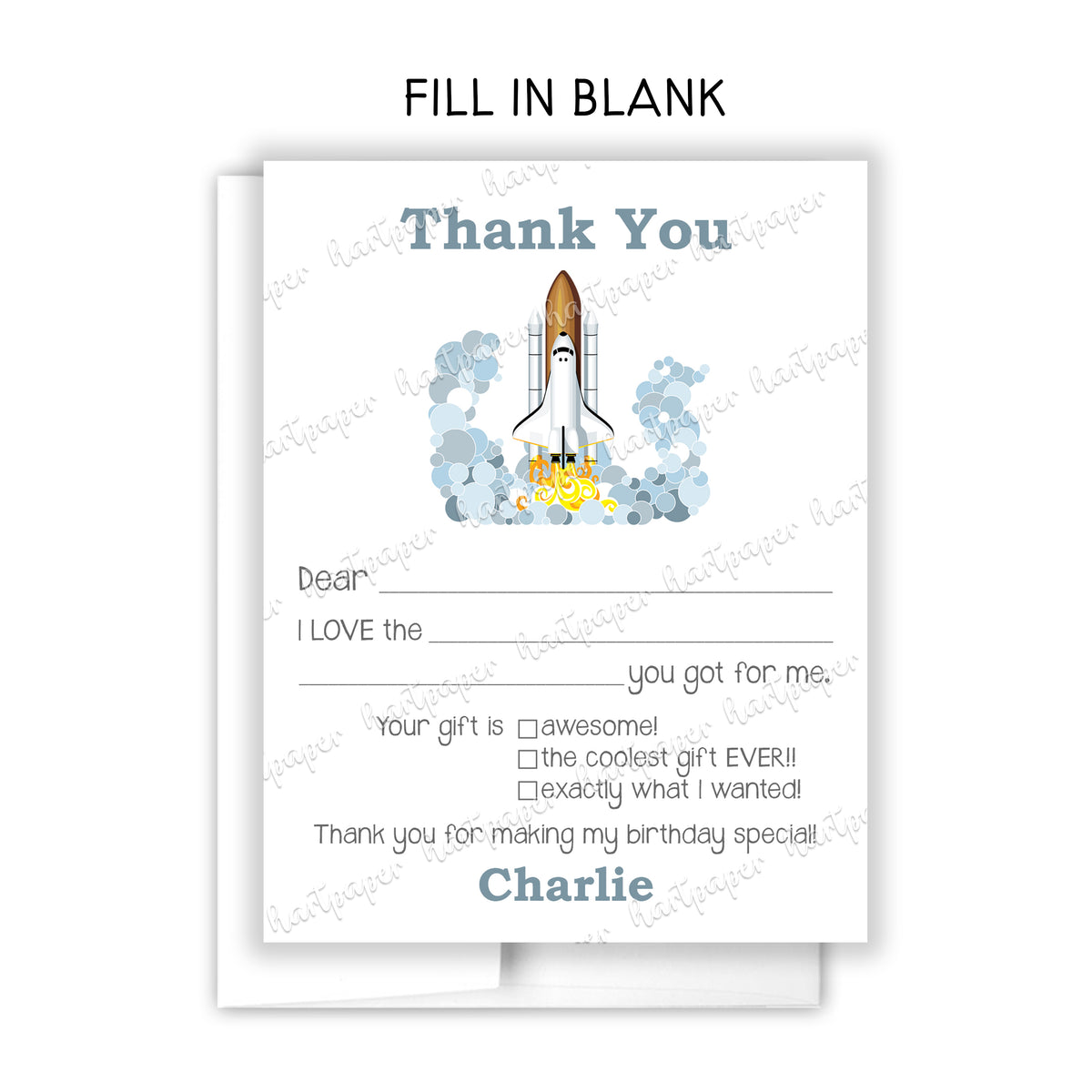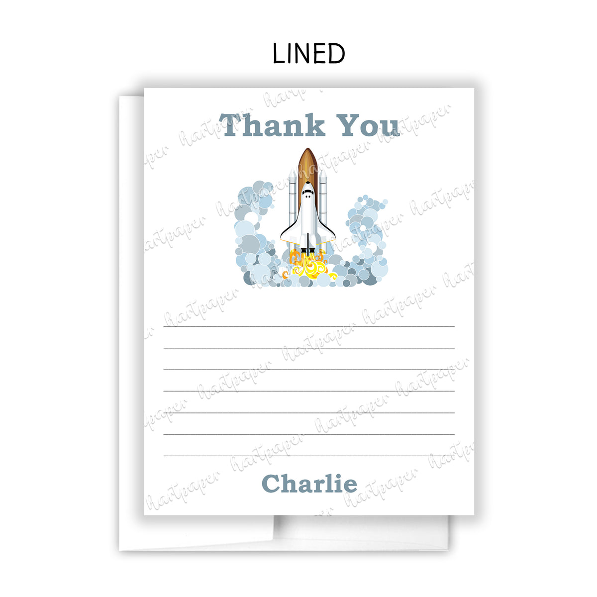 Rocket Ship Thank You Note Card Personalized Custom Stationery • Fill in Blank, Lined or Blank Cards