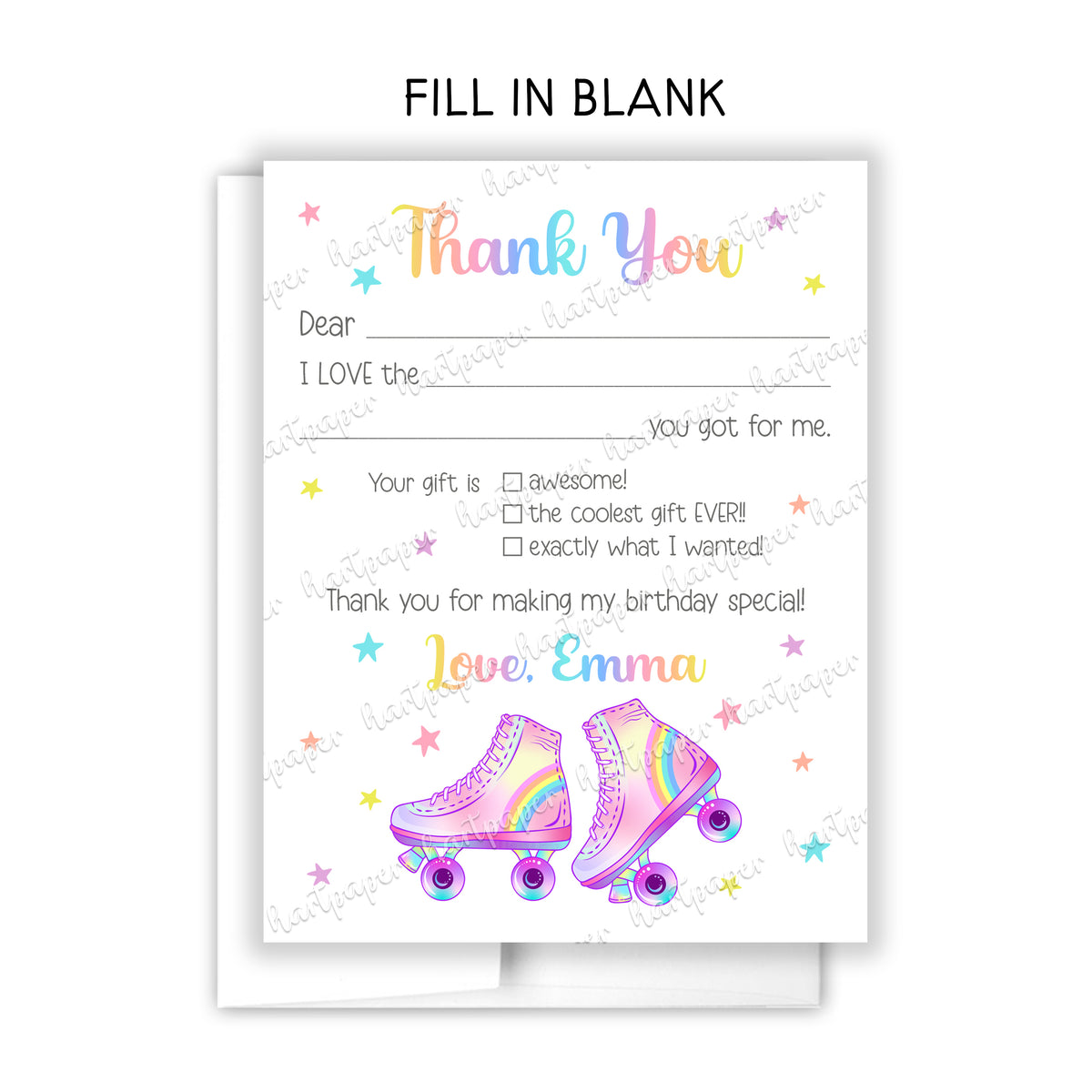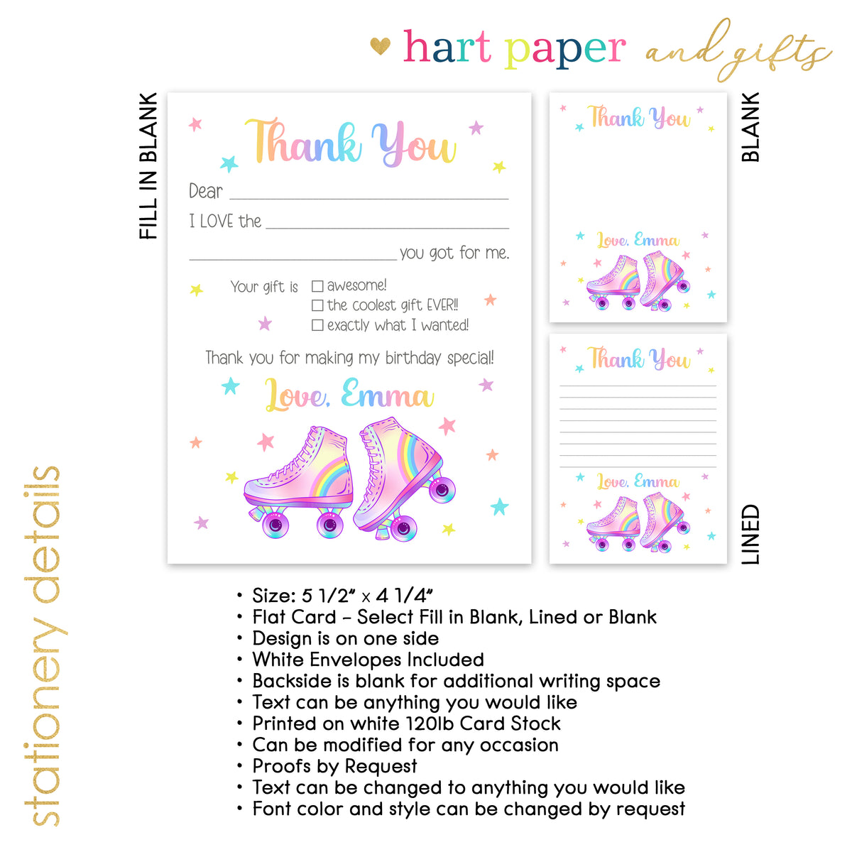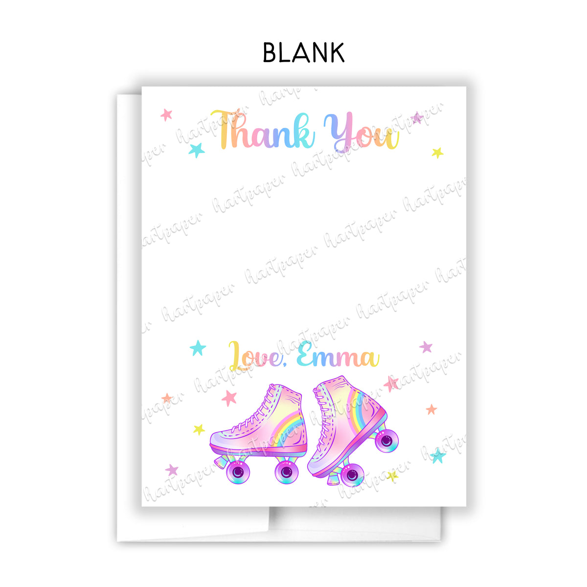Roller Skate Thank You Note Card Personalized Custom Stationery • Fill in Blank, Lined or Blank Cards