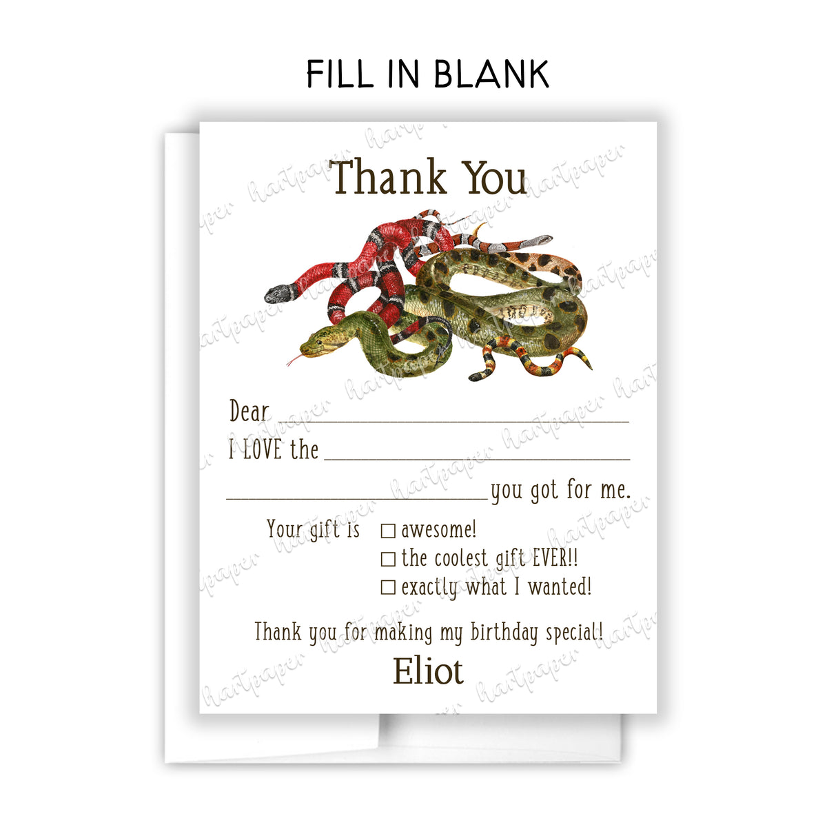 Snake Thank You Note Card Personalized Custom Stationery • Fill in Blank, Lined or Blank Cards