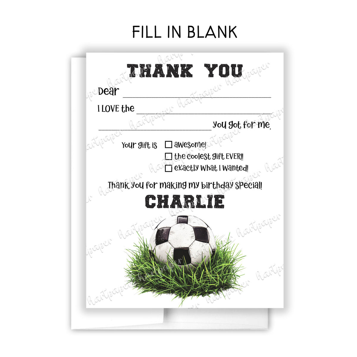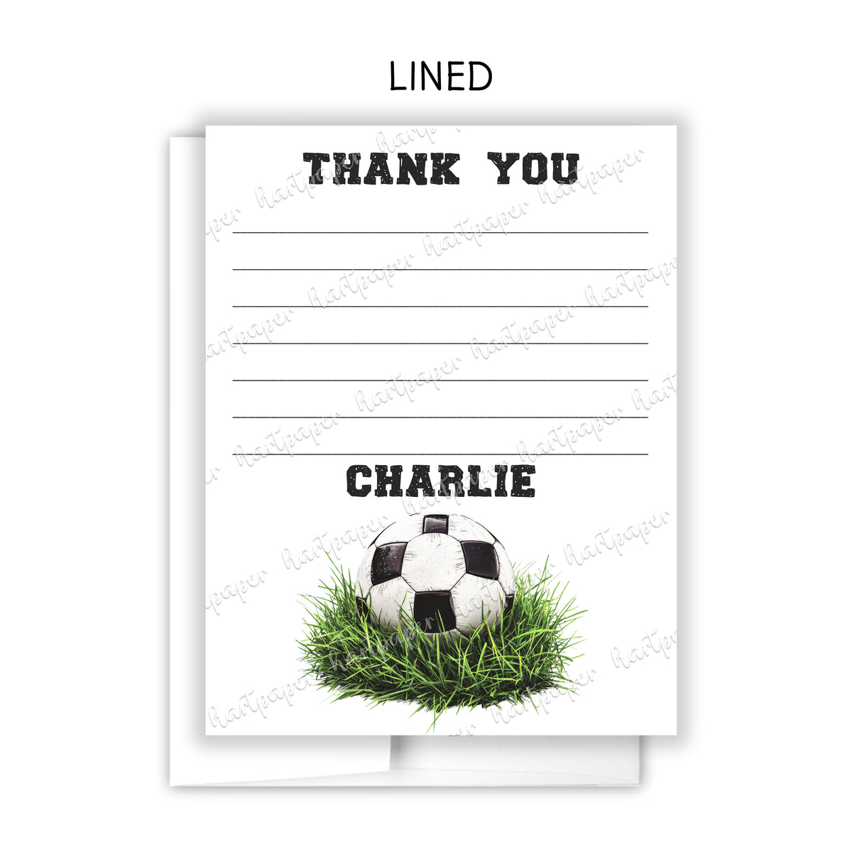 Soccer Ball Thank You Note Card Personalized Custom Stationery • Fill in Blank, Lined or Blank Cards