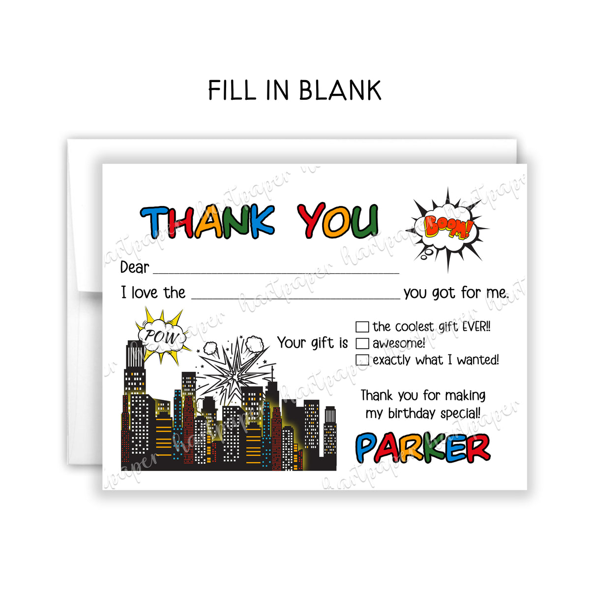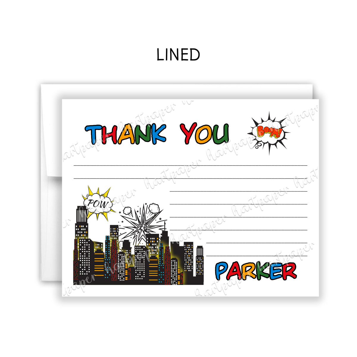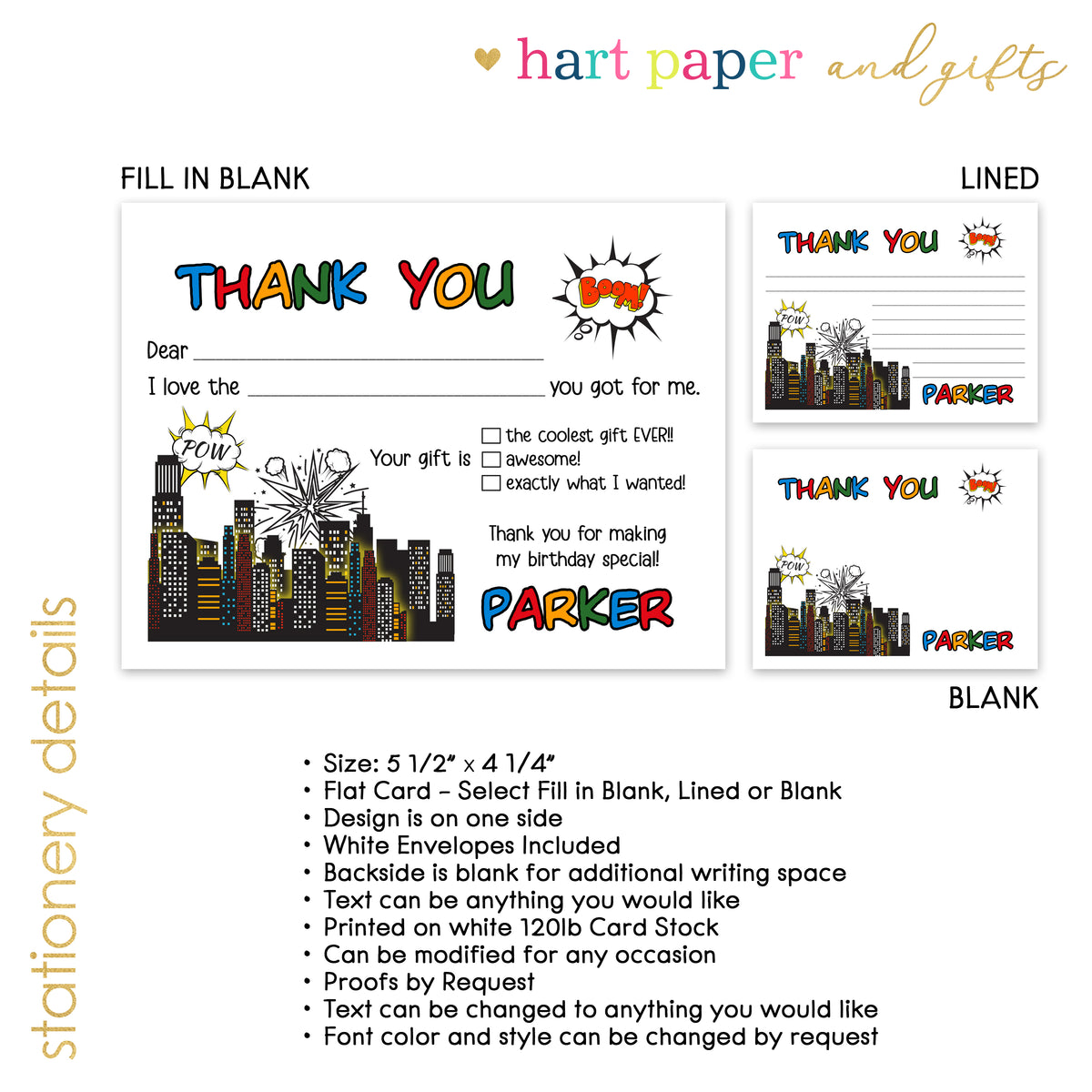 Superhero Thank You Note Card Personalized Custom Stationery • Fill in Blank, Lined or Blank Cards