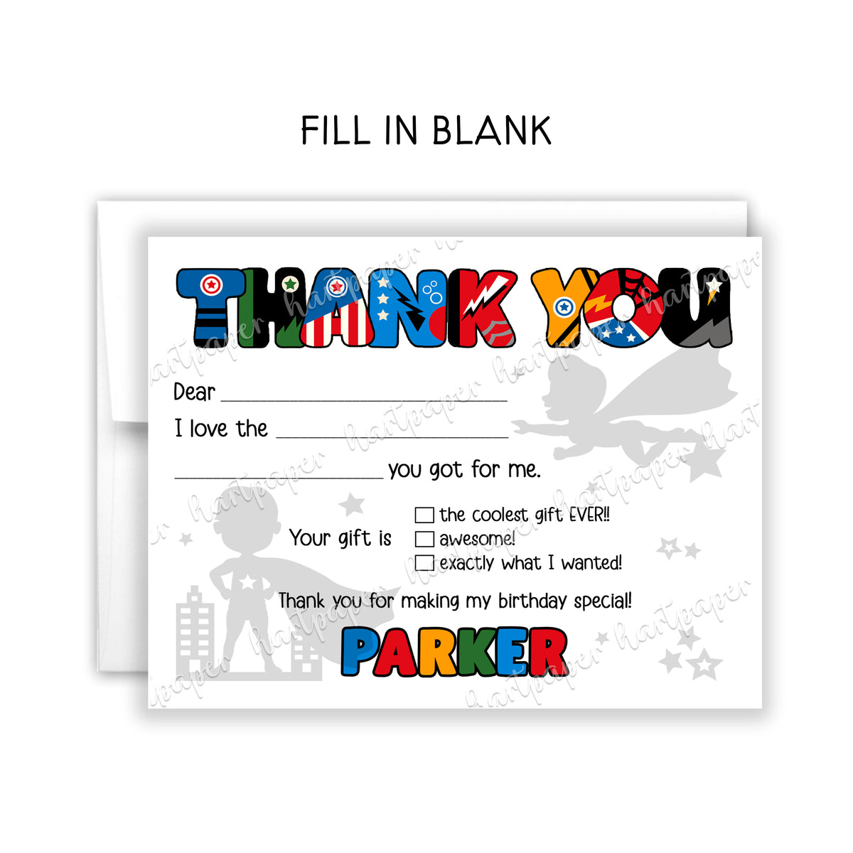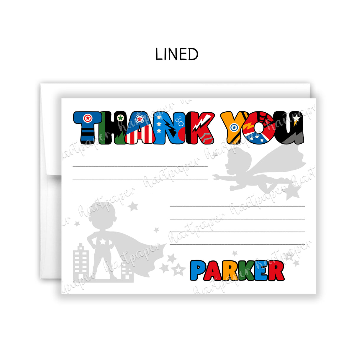 Superhero Thank You Note Card Personalized Custom Stationery • Fill in Blank, Lined or Blank Cards