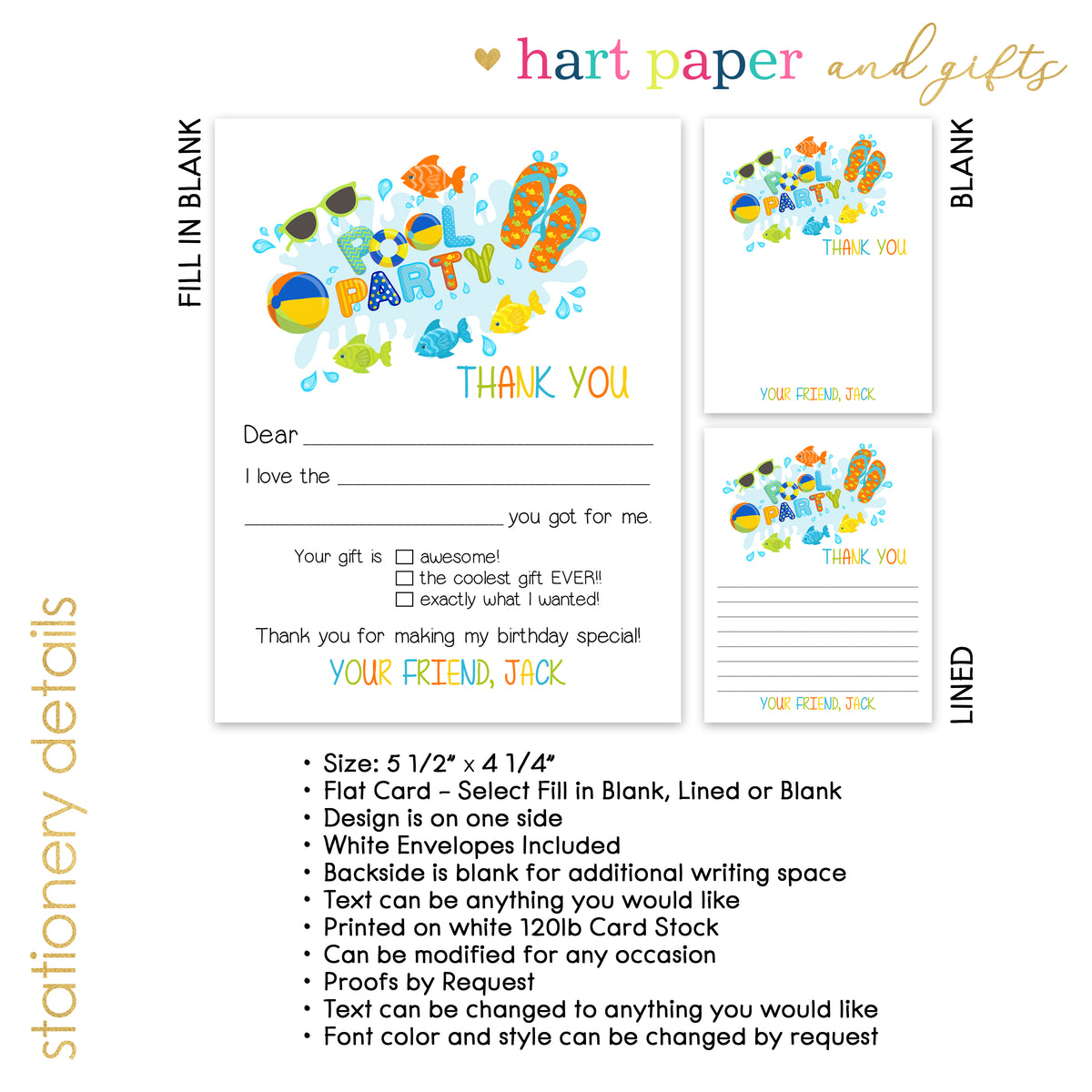 Swimming Thank You Note Card Personalized Custom Stationery • Fill in Blank, Lined or Blank Cards