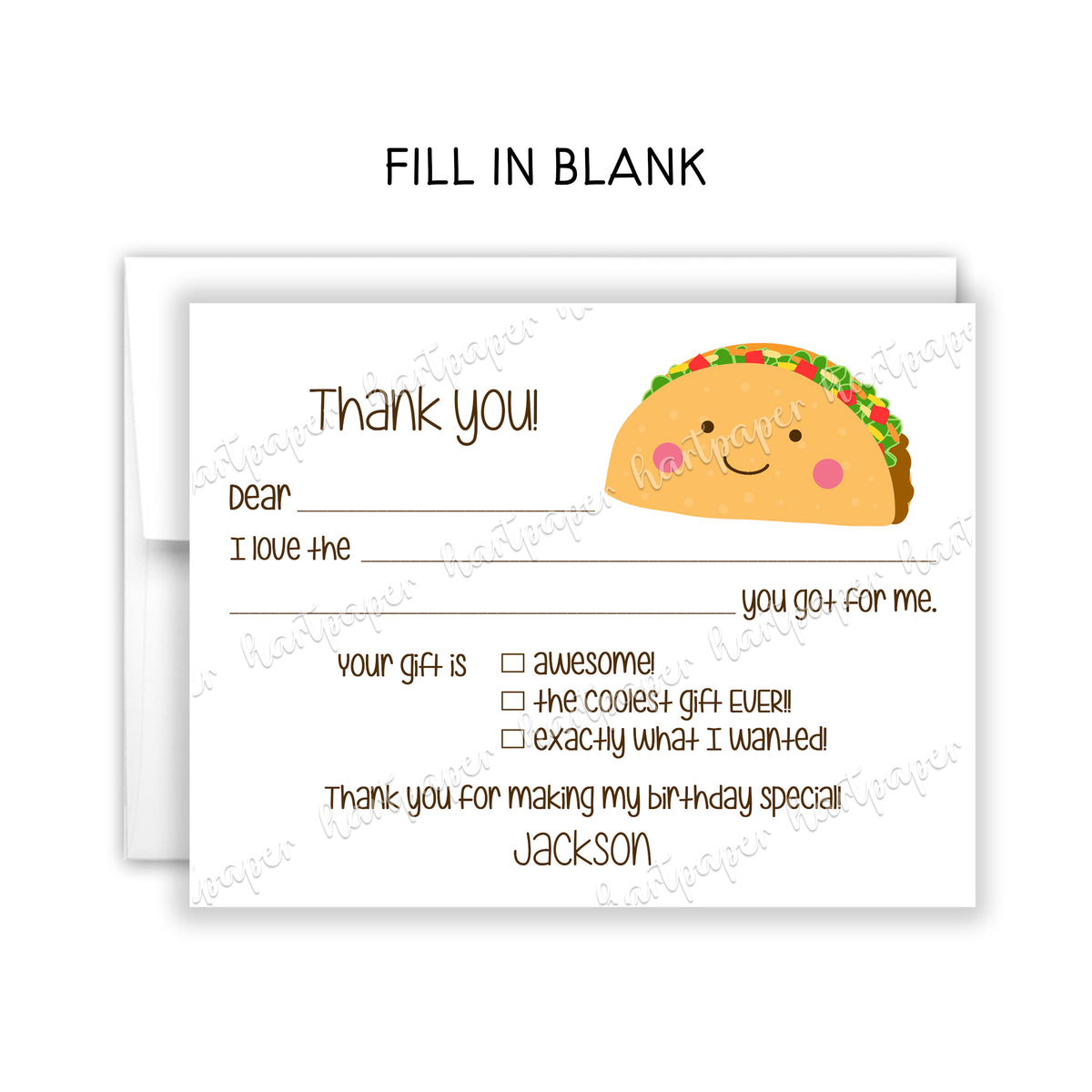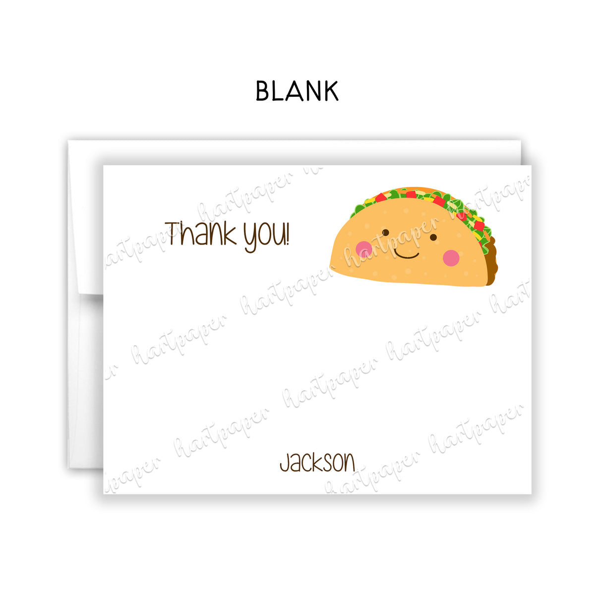 Taco Thank You Note Card Personalized Custom Stationery • Fill in Blank, Lined or Blank Cards
