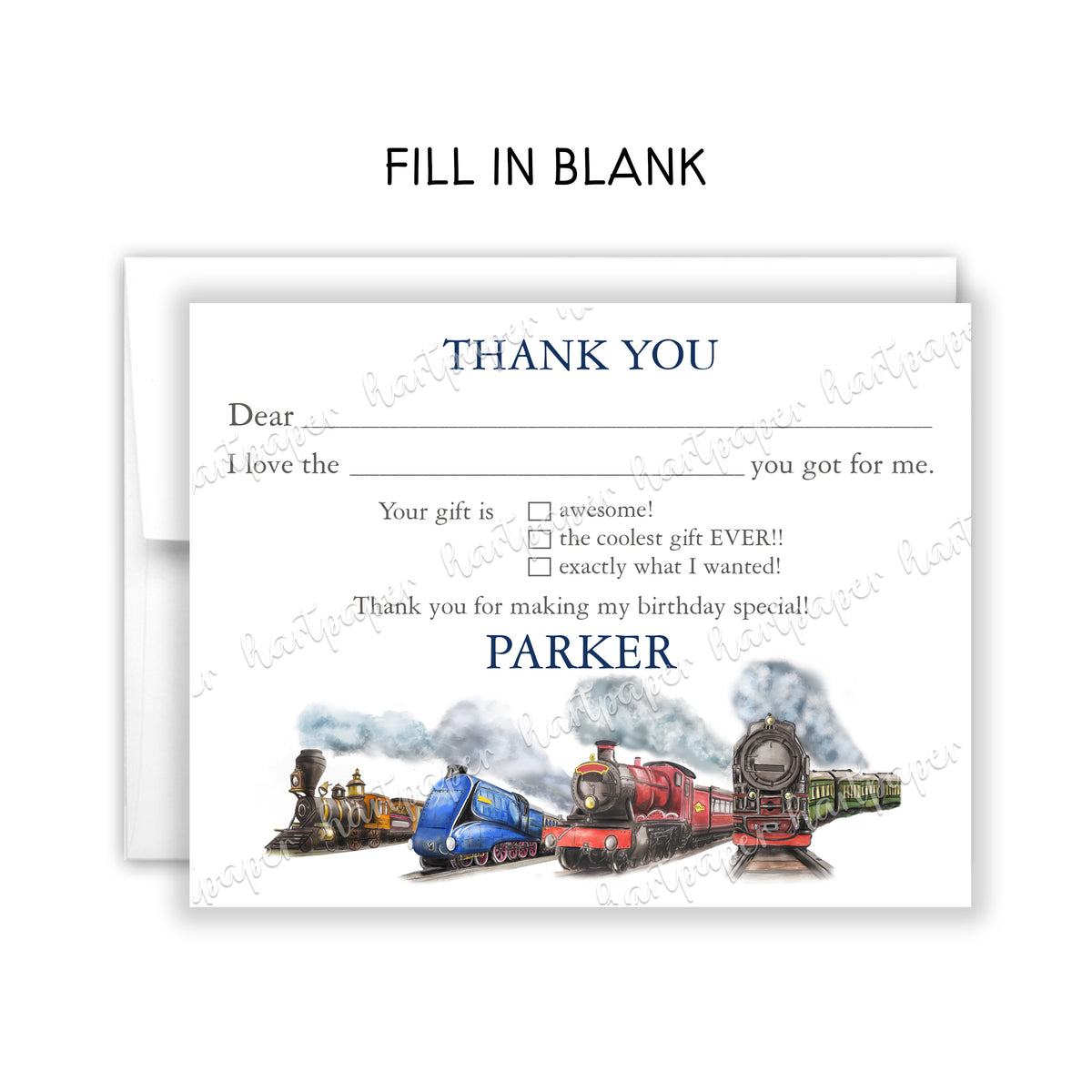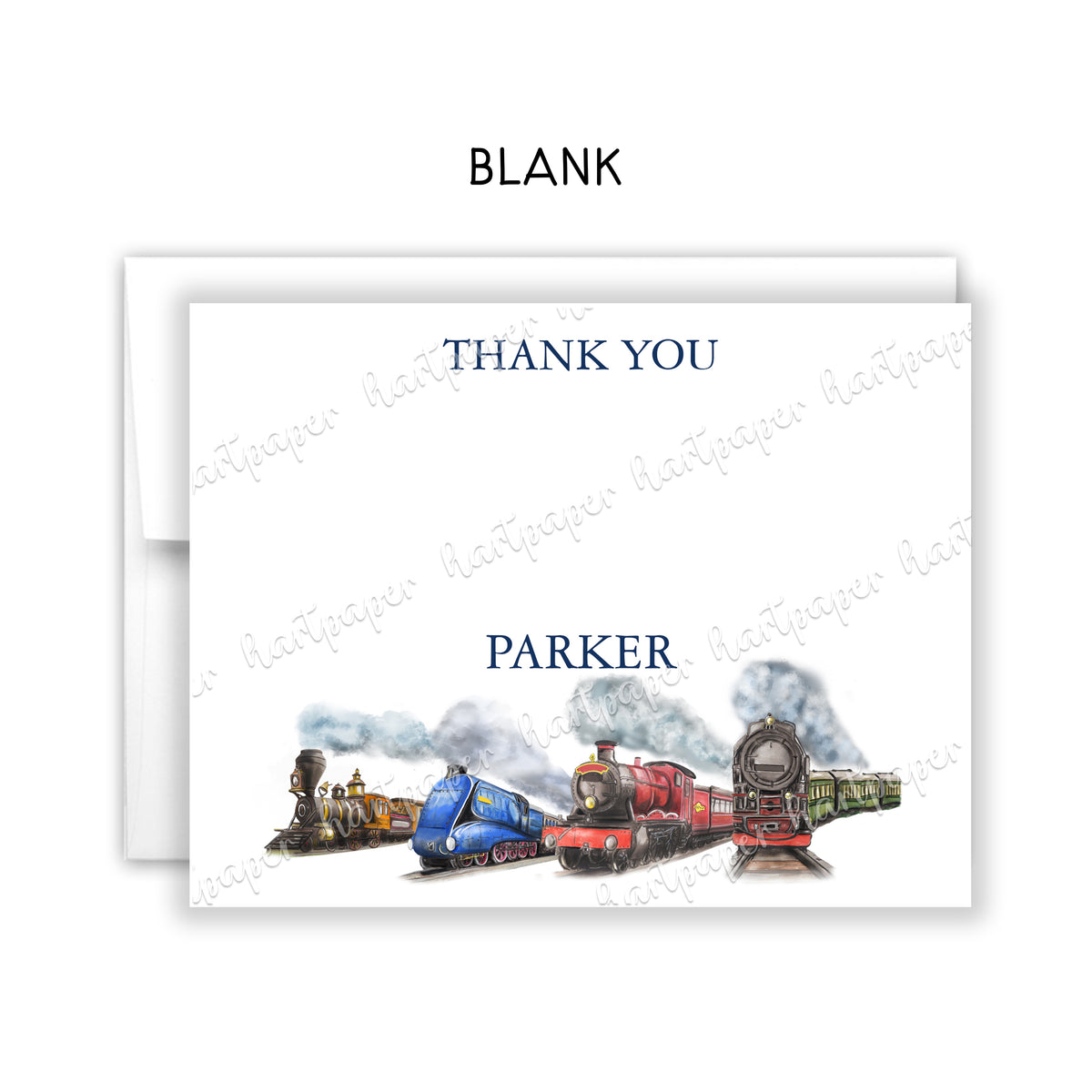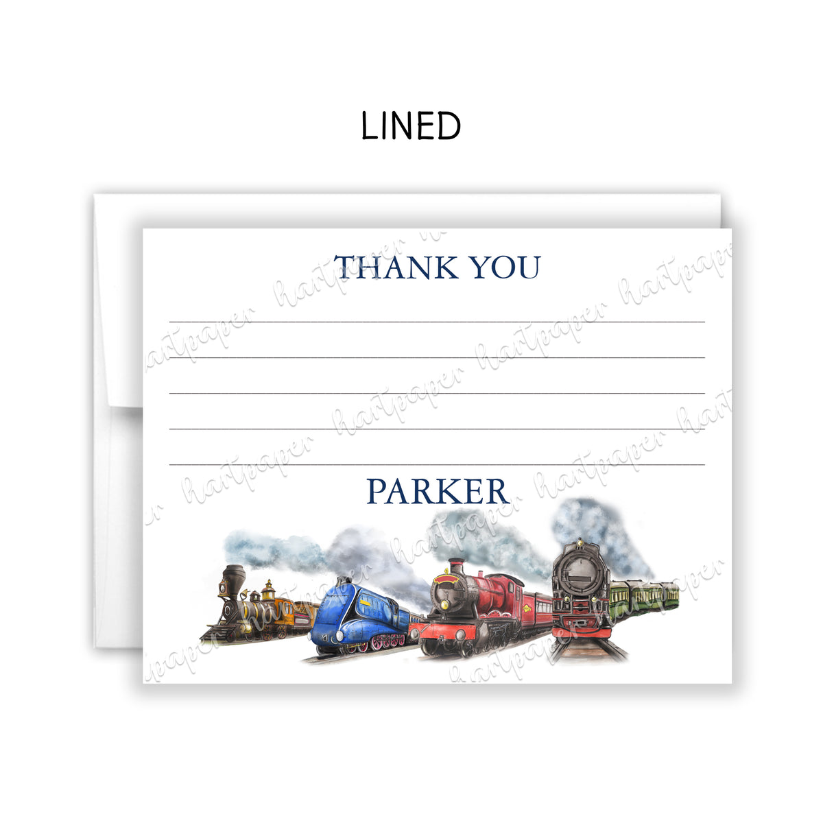 Train Thank You Note Card Personalized Custom Stationery • Fill in Blank, Lined or Blank Cards