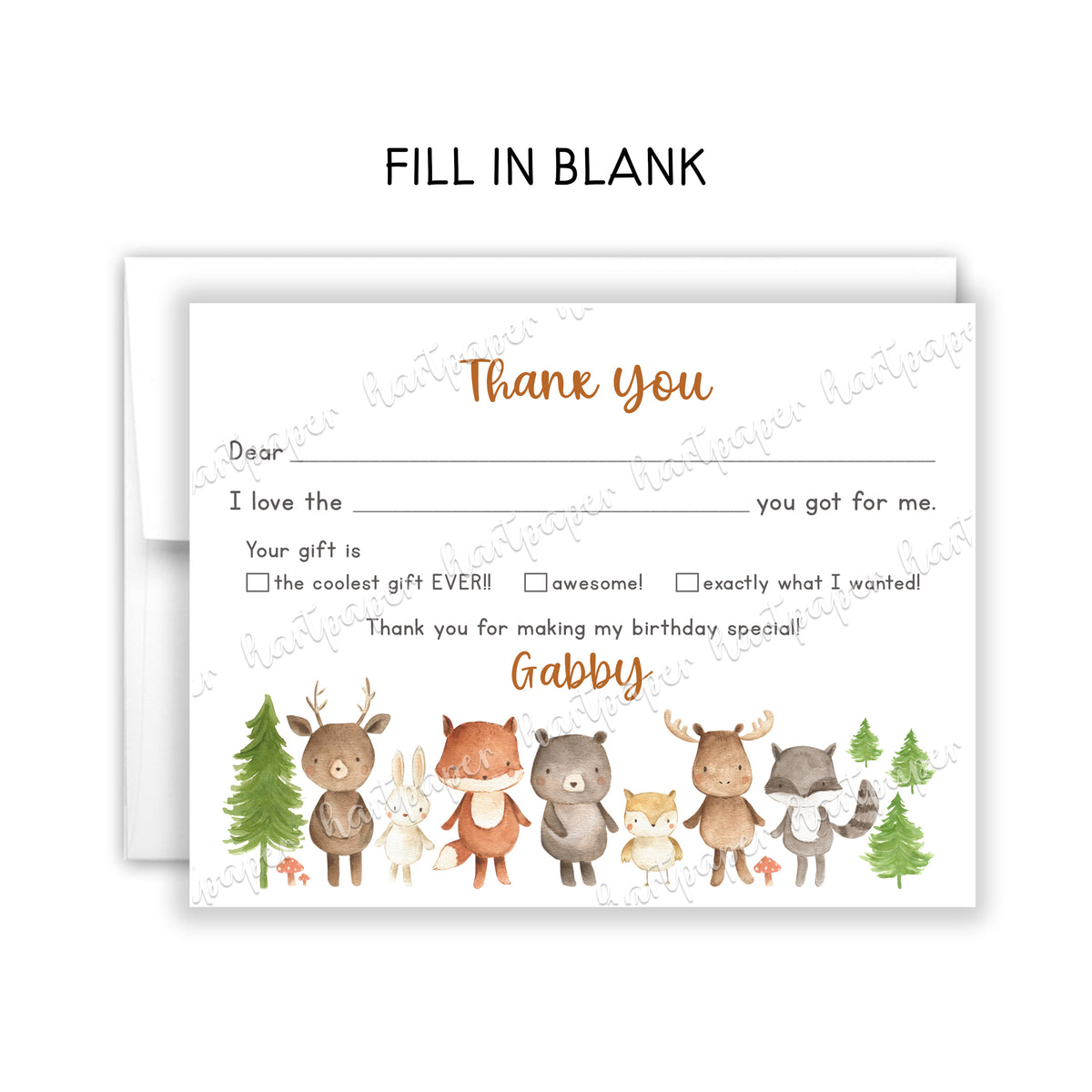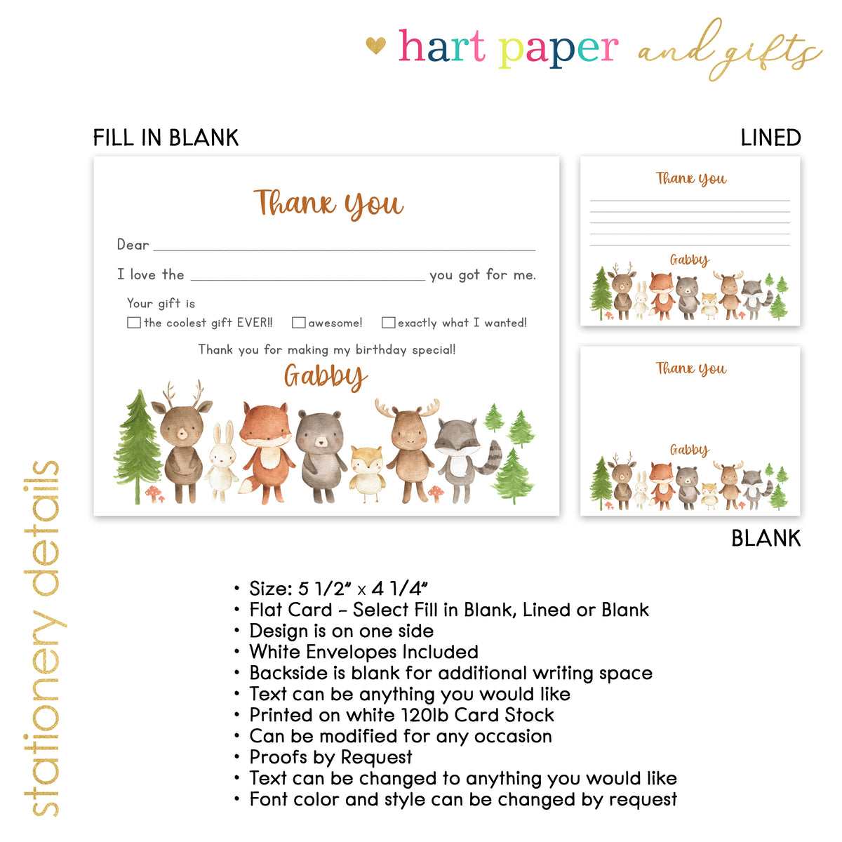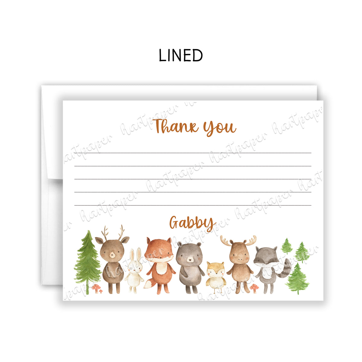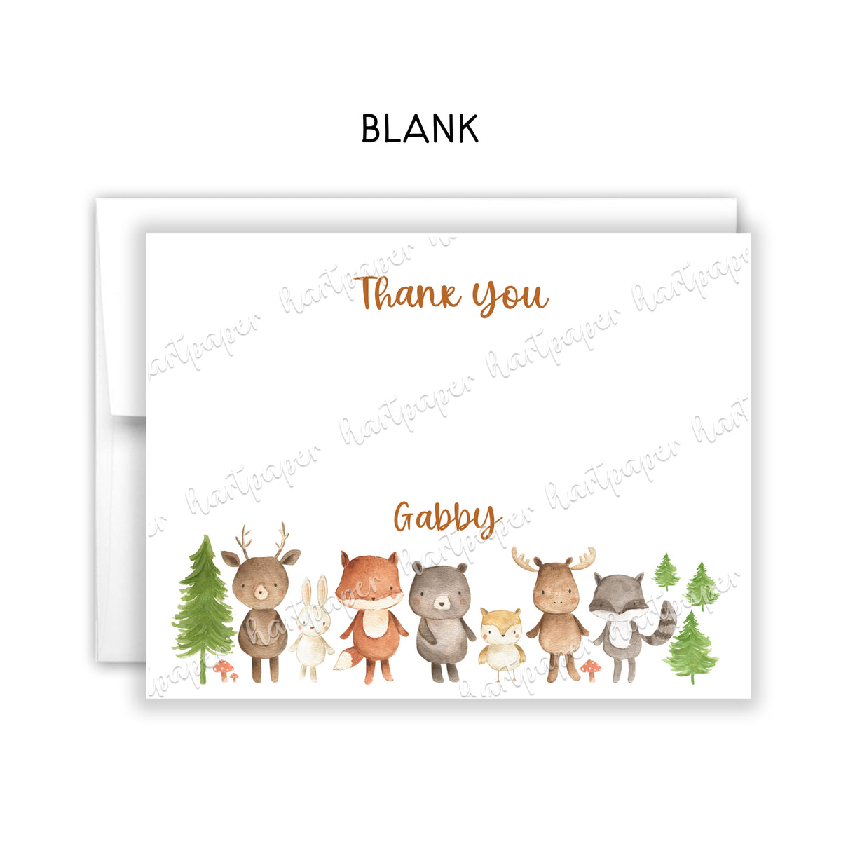 Woodland Animals Thank You Note Card Personalized Custom Stationery • Fill in Blank, Lined or Blank Cards