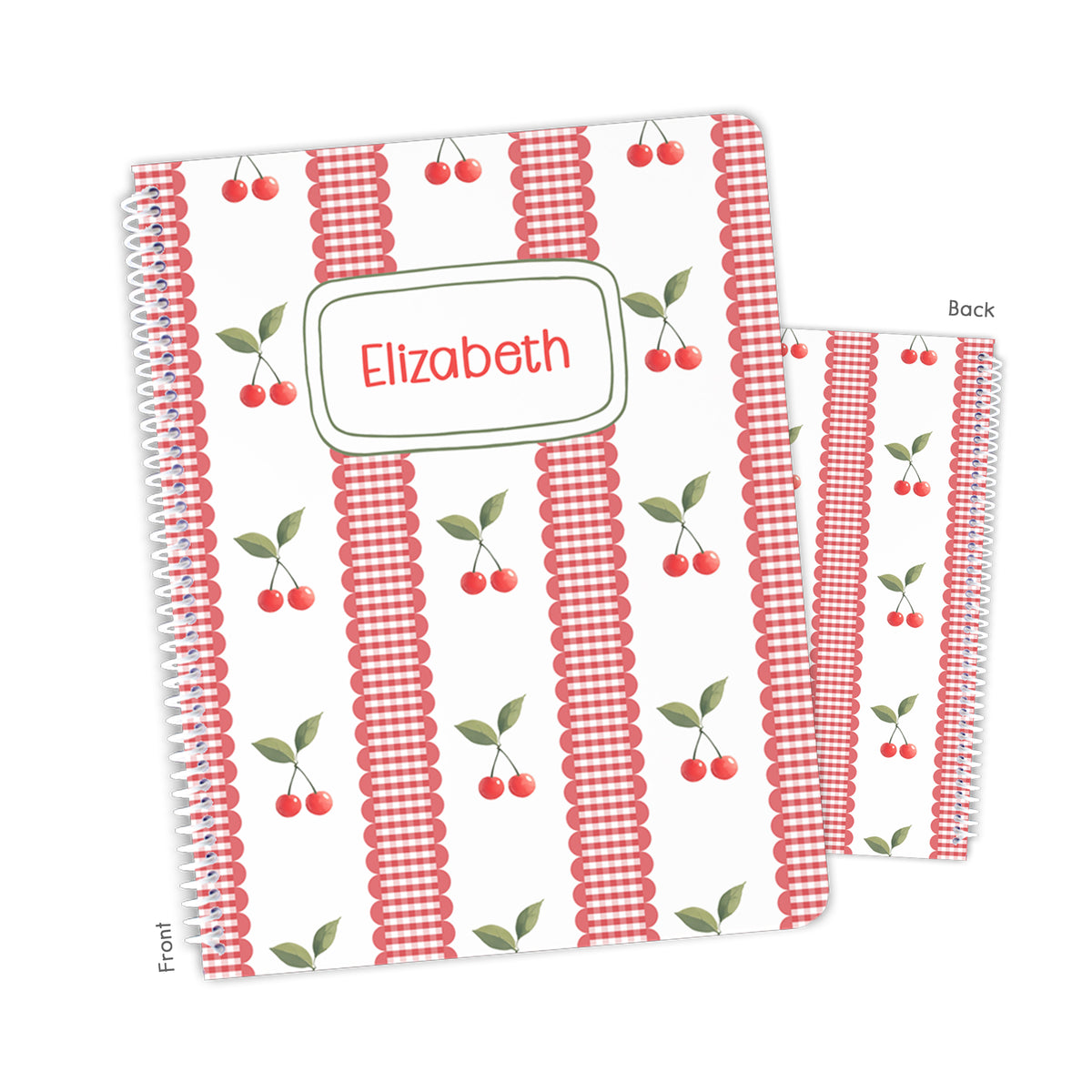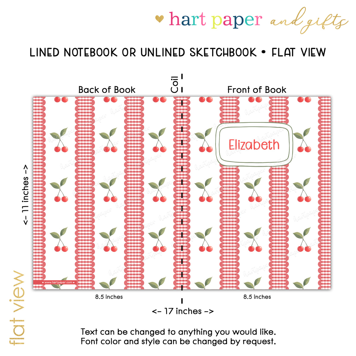 Cherry Cherries Gingham Personalized Custom Notebook or Sketchbook • School Office Supplies