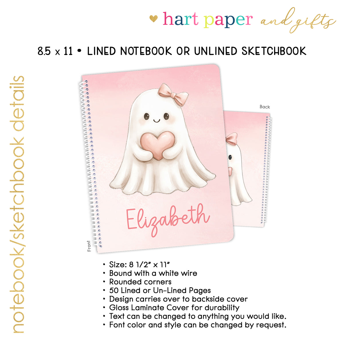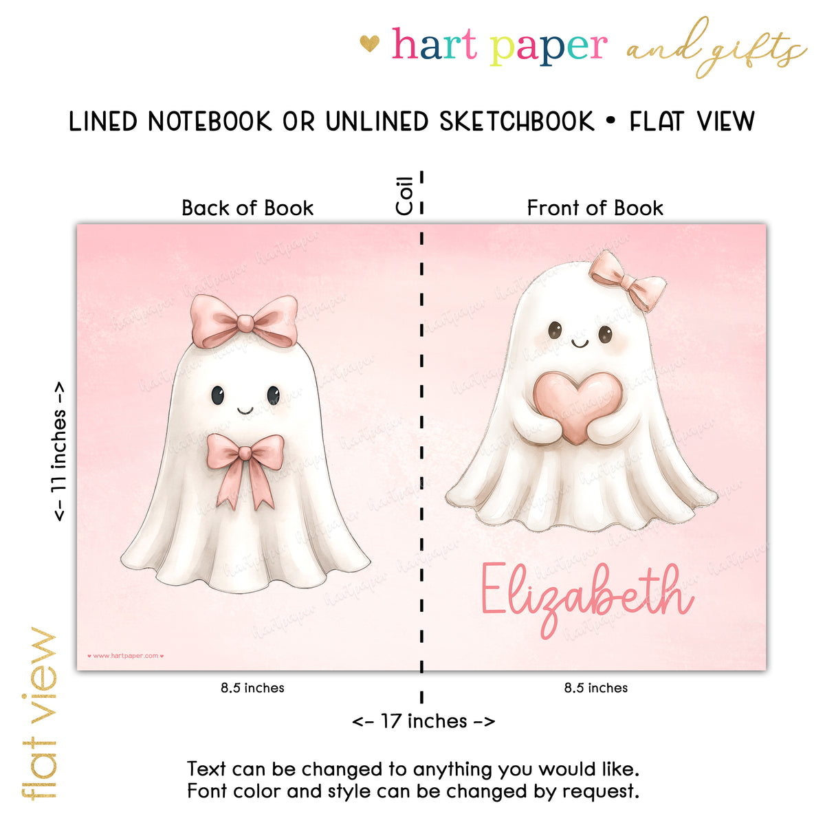 Cute Pink Ghost Personalized Custom Notebook or Sketchbook • School Office Supplies