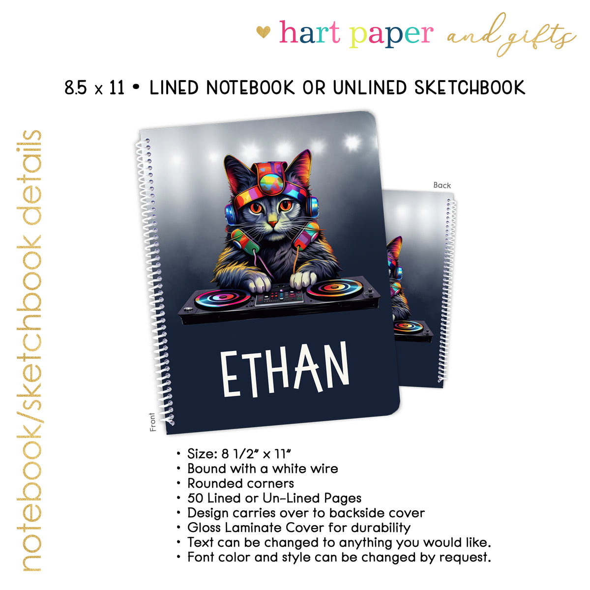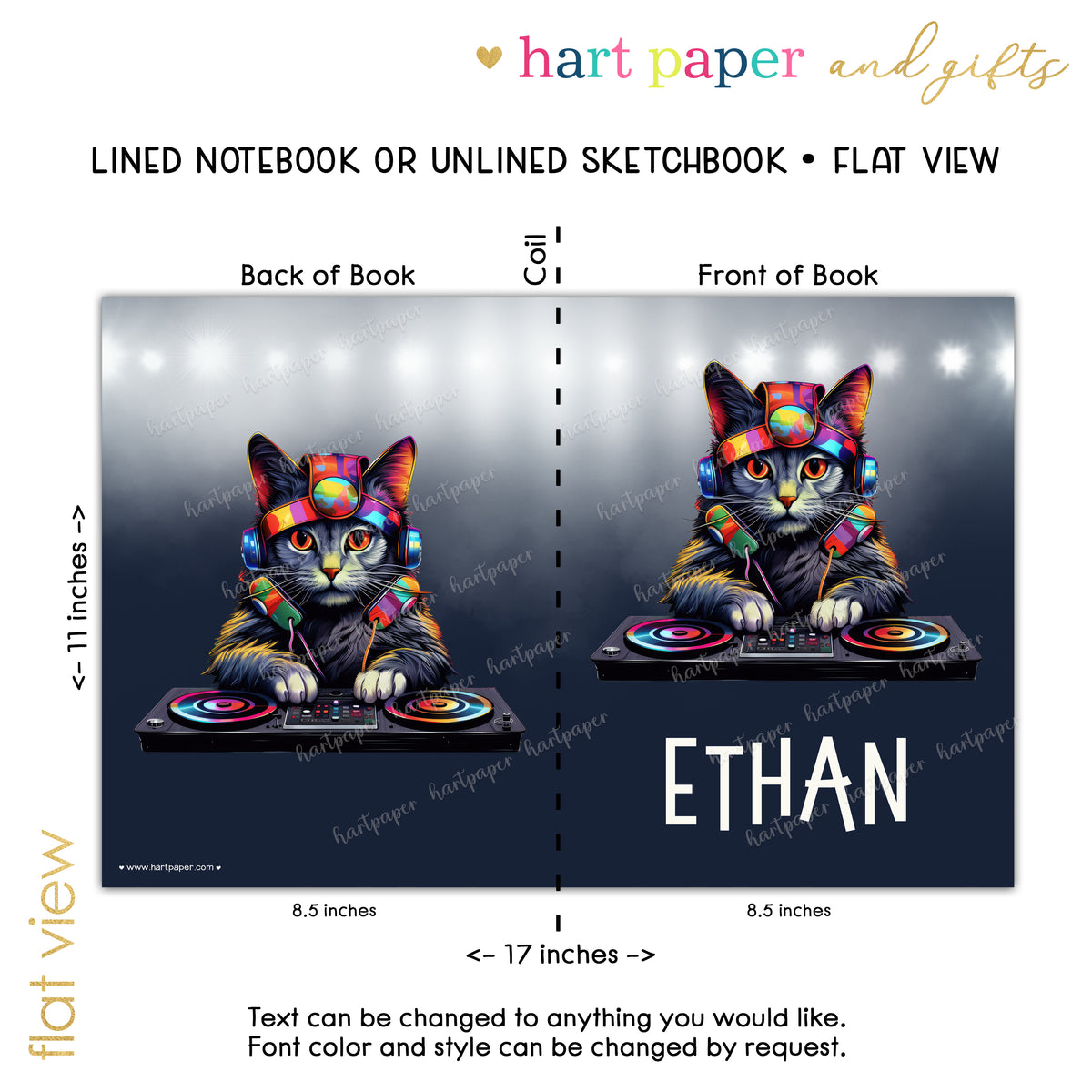 DJ Kitten Cat Personalized Custom Notebook or Sketchbook • School Office Supplies
