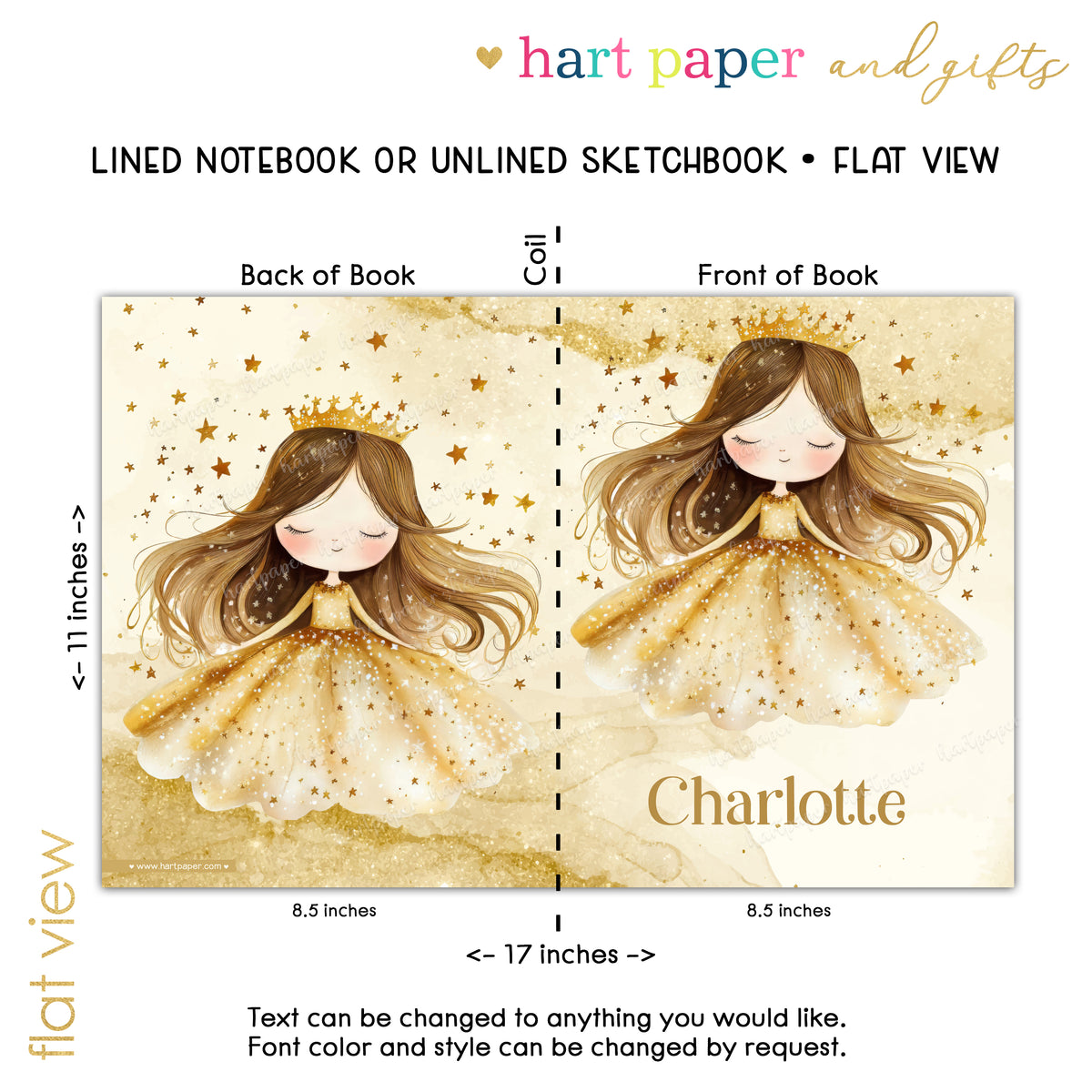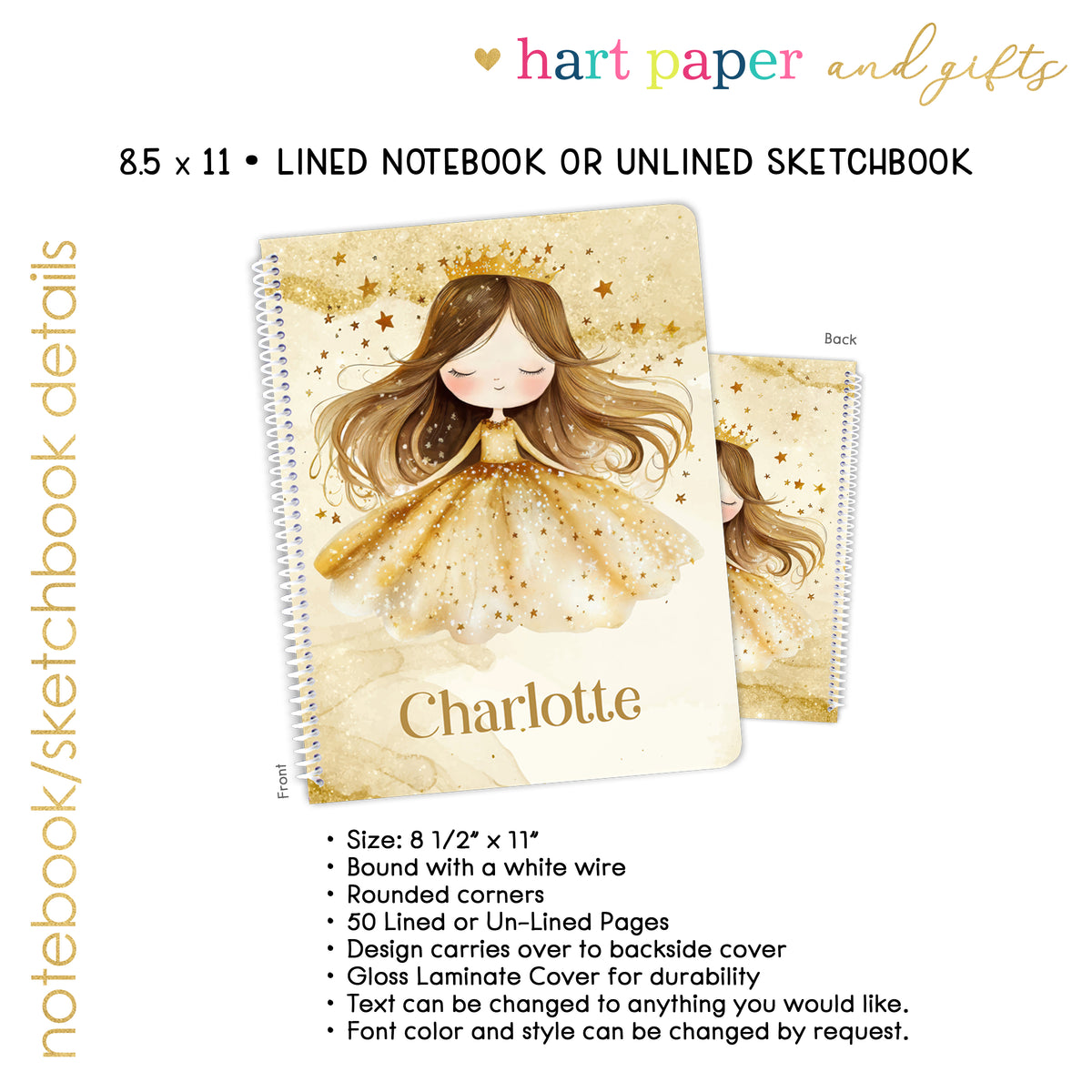 Gold Princess Personalized Custom Notebook or Sketchbook • School Office Supplies