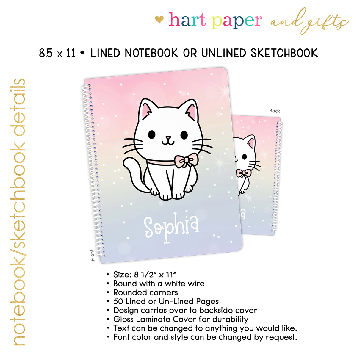Kitten Cat Personalized Custom Notebook or Sketchbook • School Office Supplies
