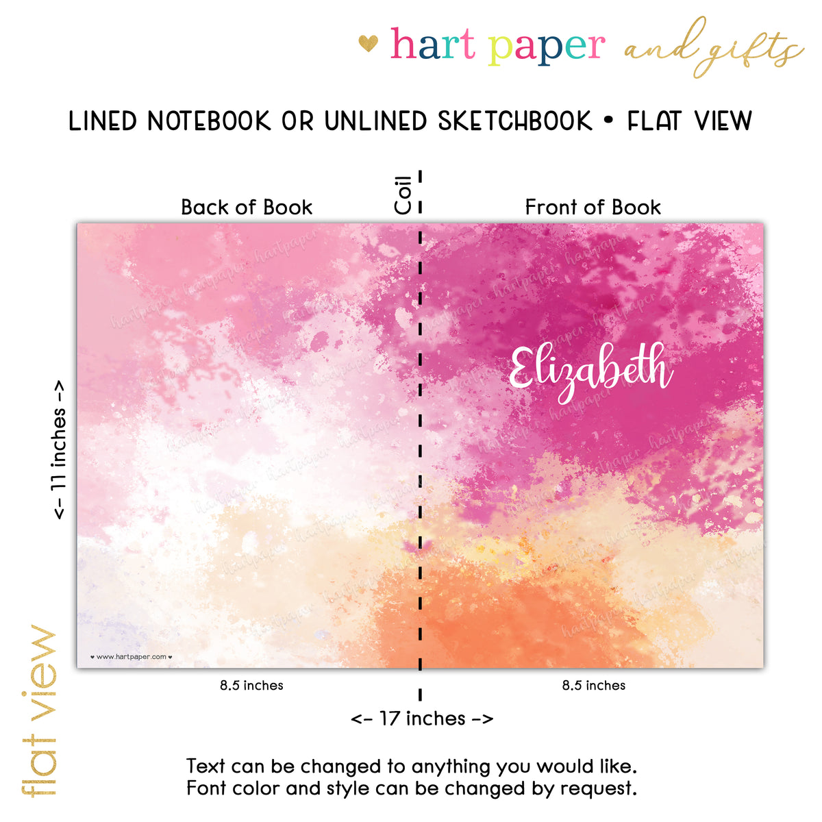 Orange Pink Personalized Custom Notebook or Sketchbook • School Office Supplies