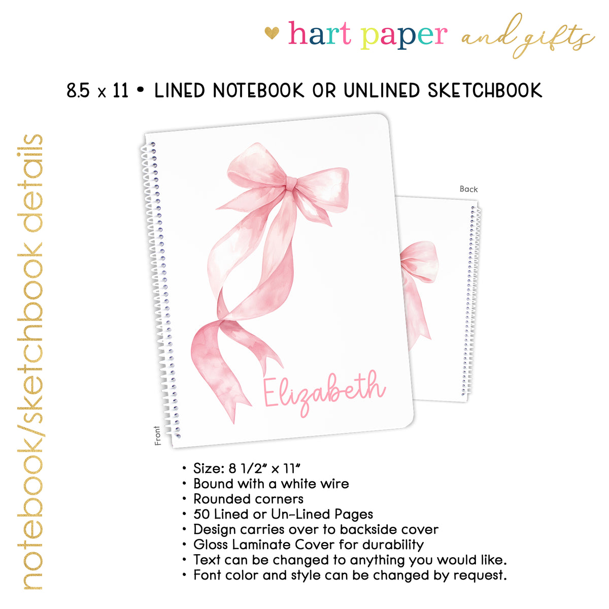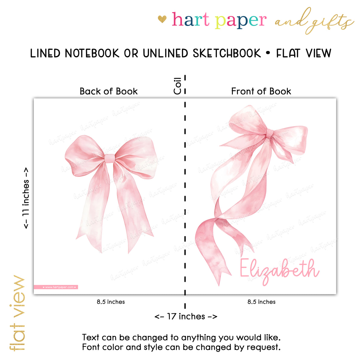 Pink Coquette Bow Personalized Custom Notebook or Sketchbook • School Office Supplies