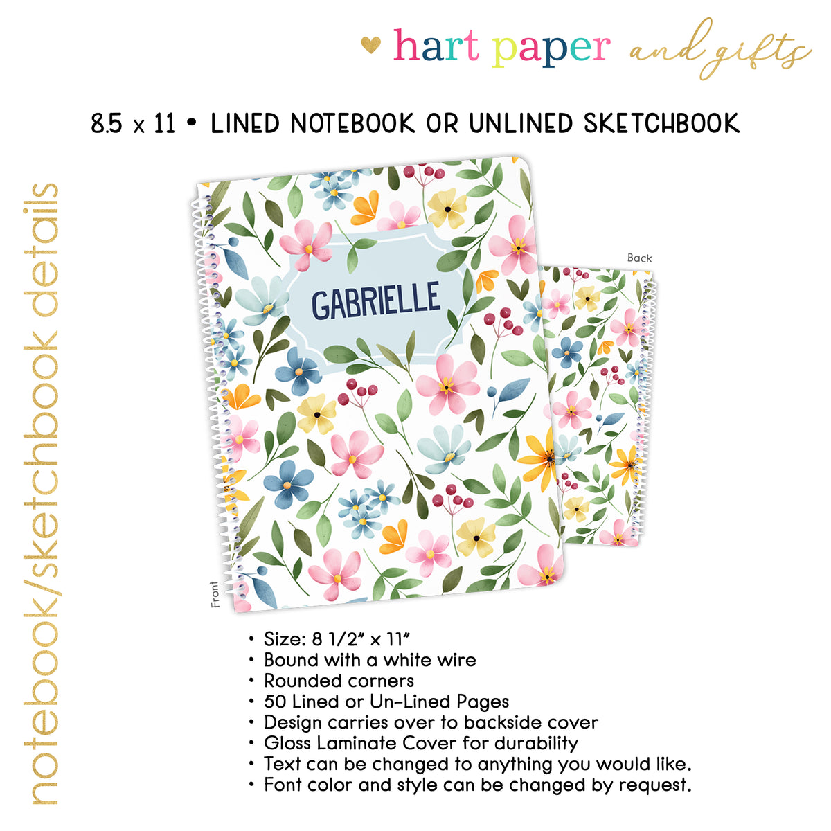 Custom text can be changed to anything you like—or removed altogether. Whether you're shopping for a student, artist, or planner lover, these high-quality books make the perfect personalized stationery gift.