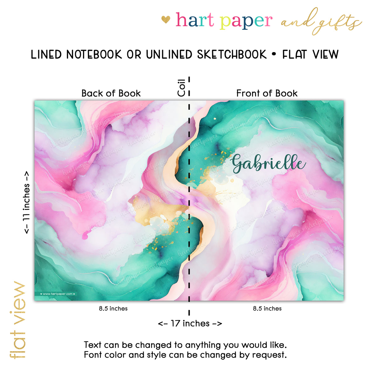 Rainbow Marble Personalized Custom Notebook or Sketchbook • School Office Supplies