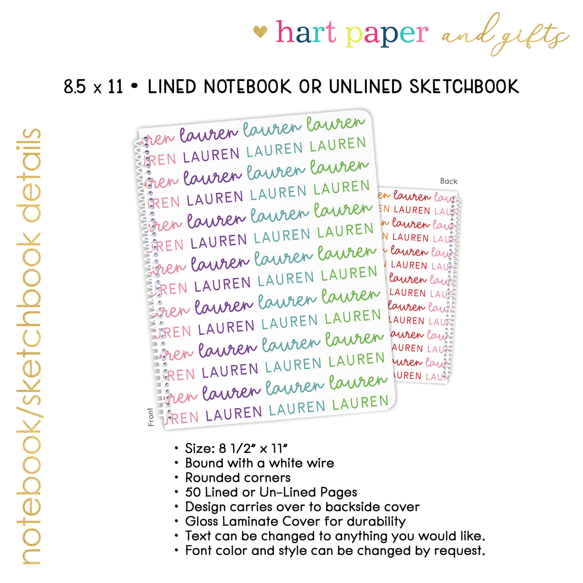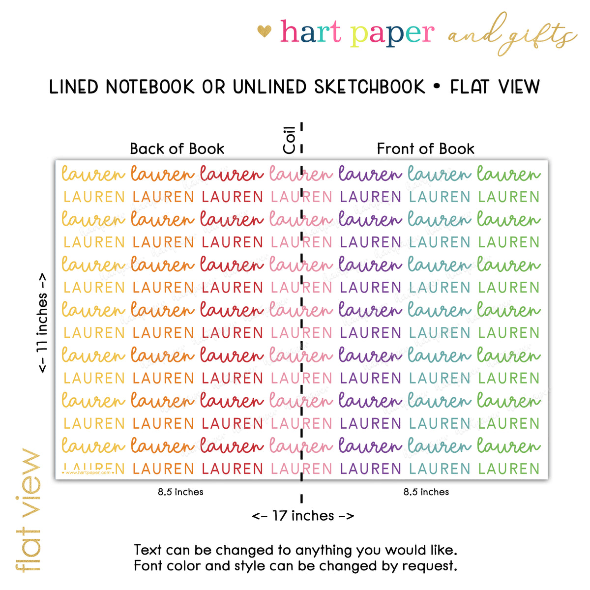 Rainbow Name Personalized Custom Notebook or Sketchbook • School Office Supplies