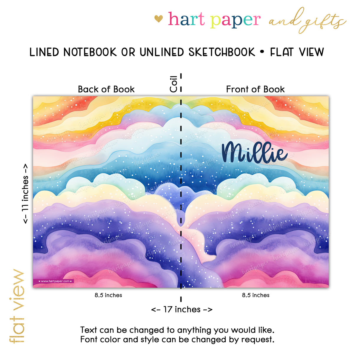Rainbow Personalized Custom Notebook or Sketchbook • School Office Supplies