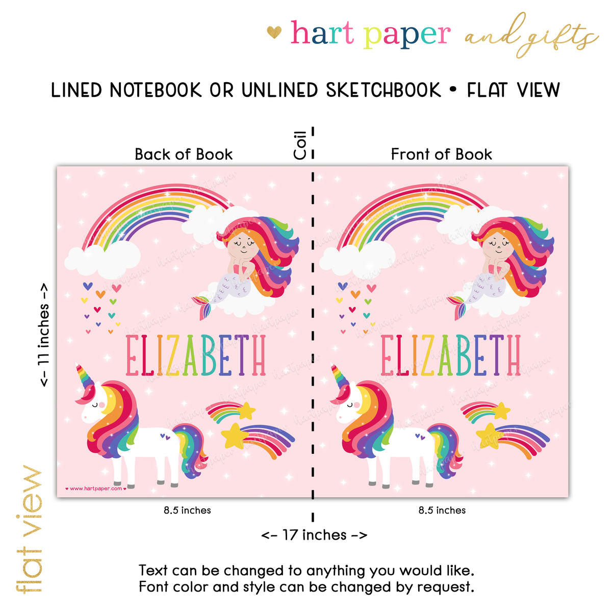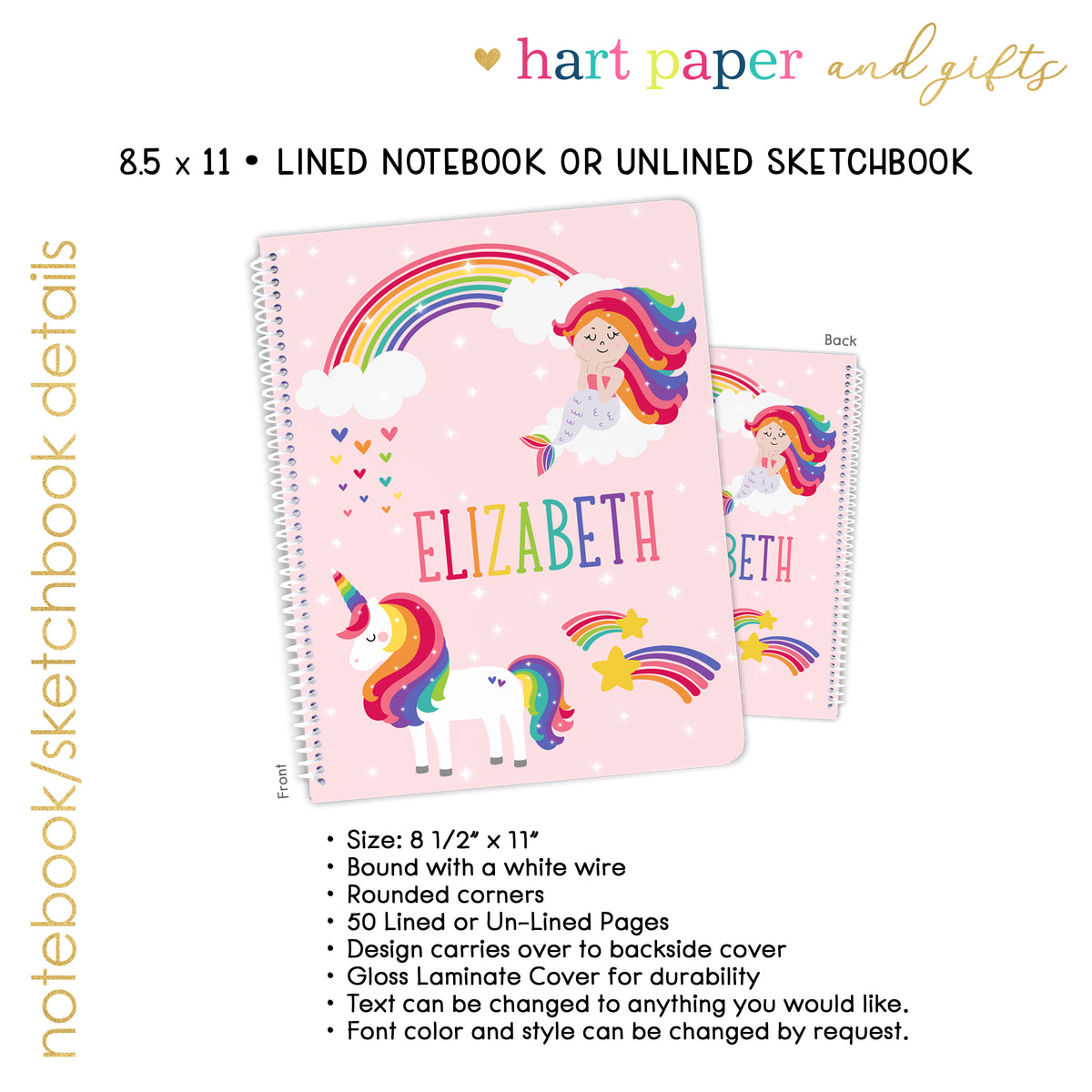 Rainbow Unicorn Mermaid Personalized Custom Notebook or Sketchbook • School Office Supplies