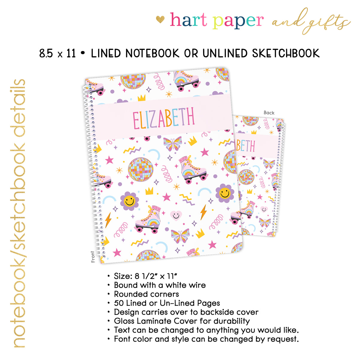 Our personalized notebooks and sketchbooks are ideal for capturing thoughts, doodles, and ideas—whether at school, home, or on the go. Choose from wide-ruled lined notebooks for writing or blank sketchbooks for drawing, sketching, or journaling.