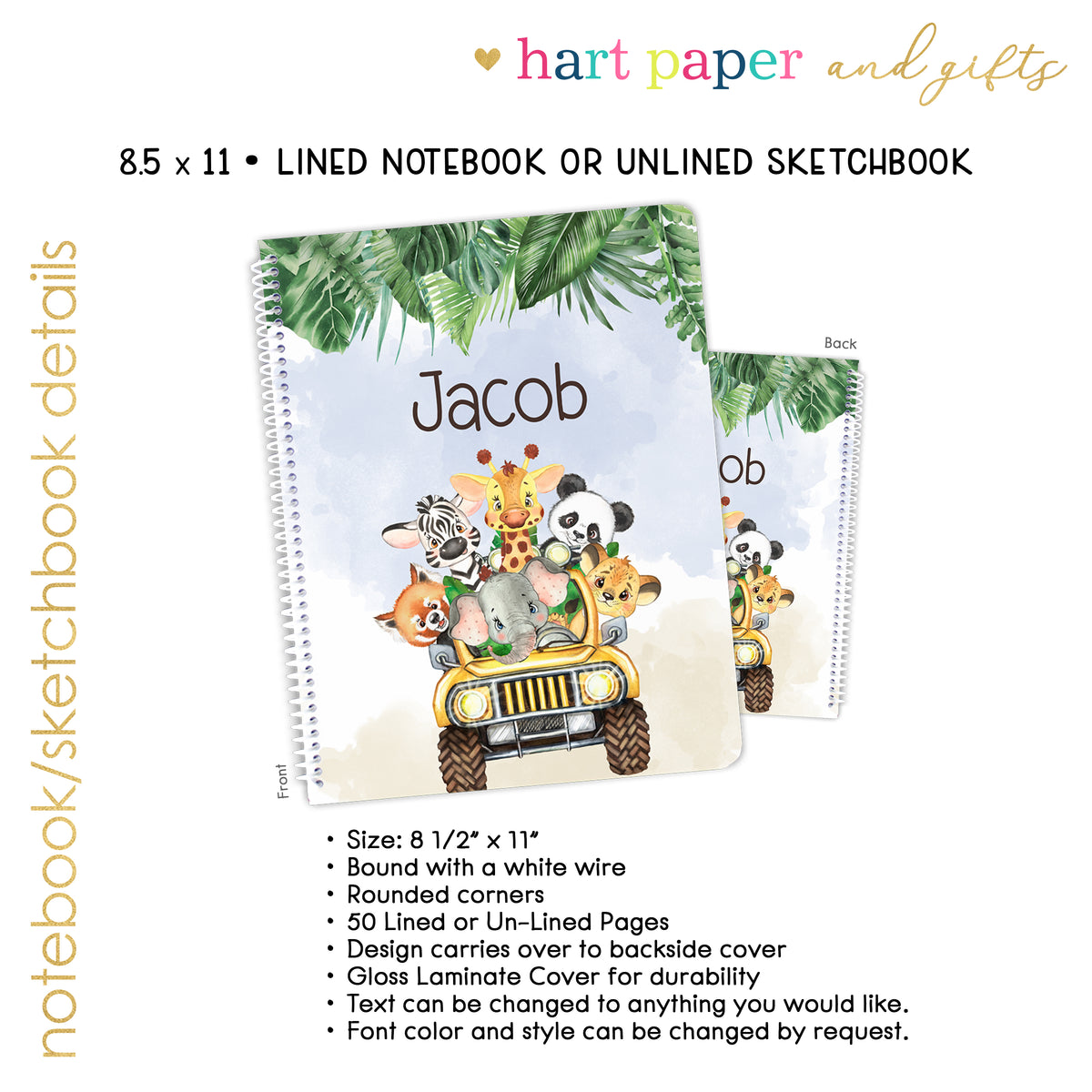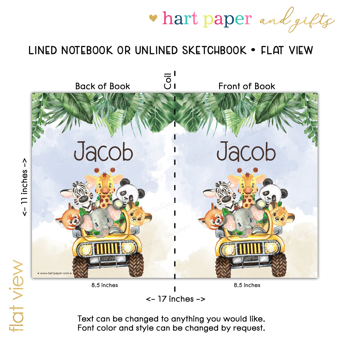 Safari Animals Personalized Custom Notebook or Sketchbook • School Office Supplies