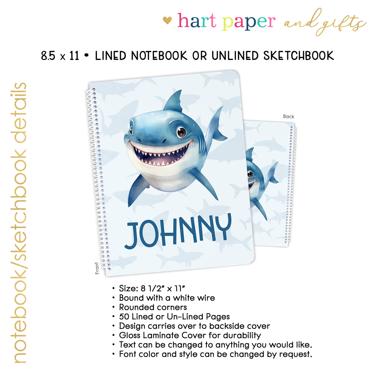 Shark Personalized Custom Notebook or Sketchbook • School Office Supplies