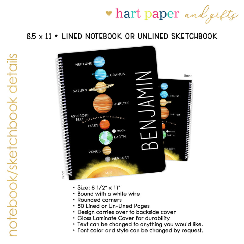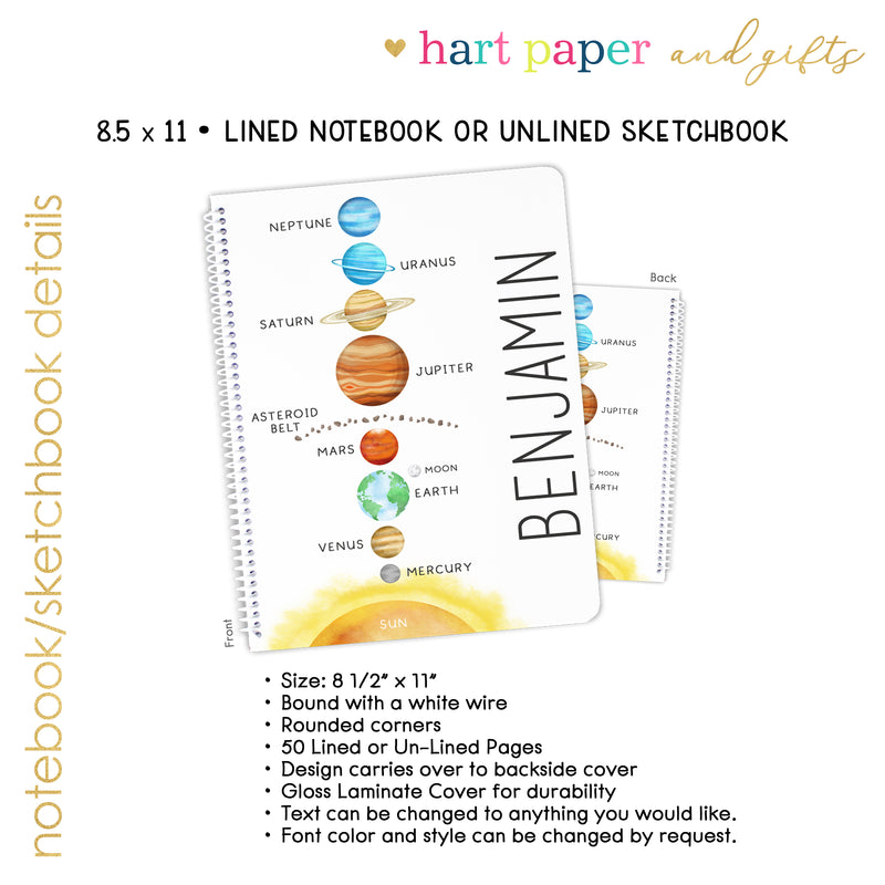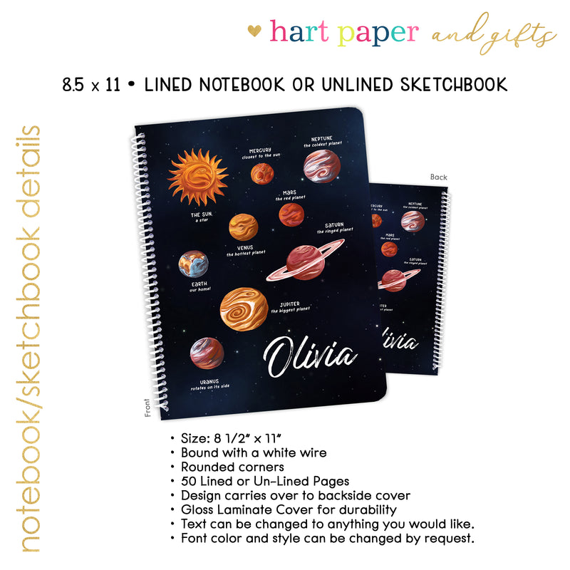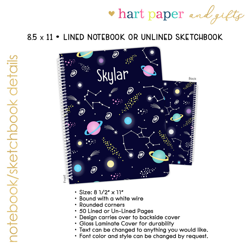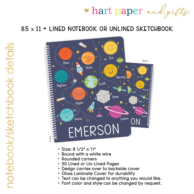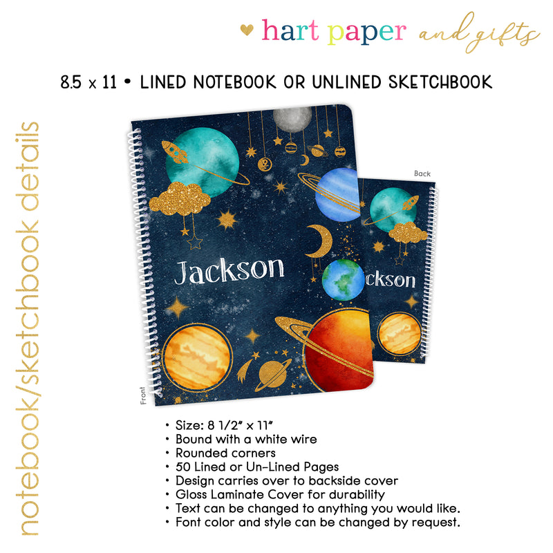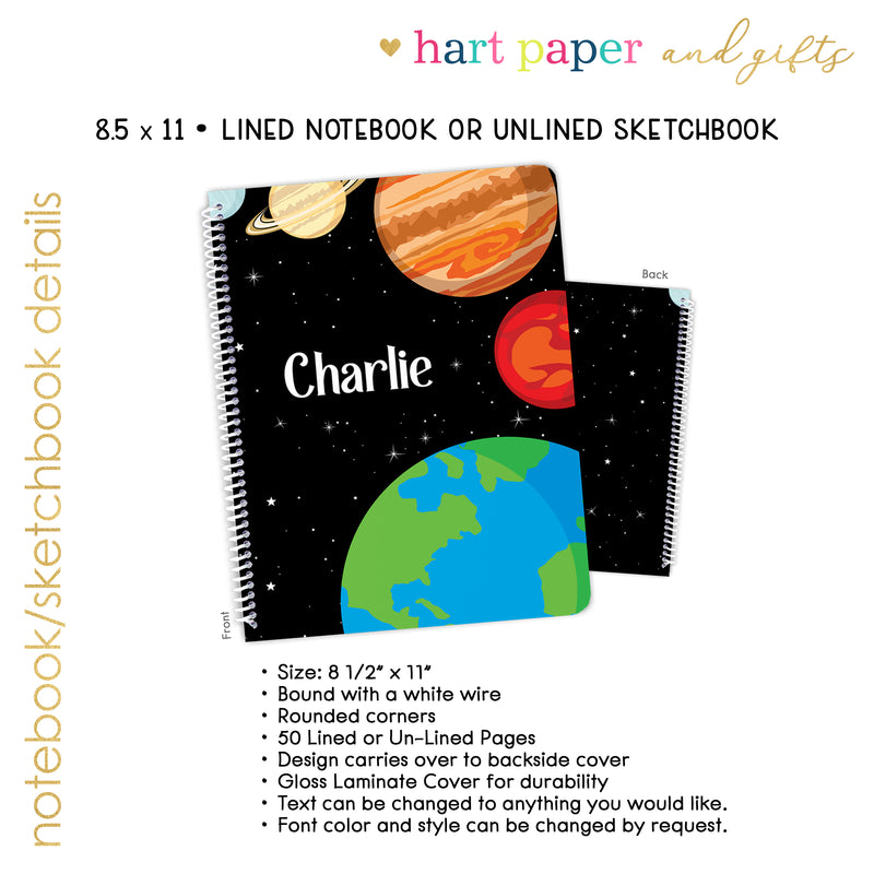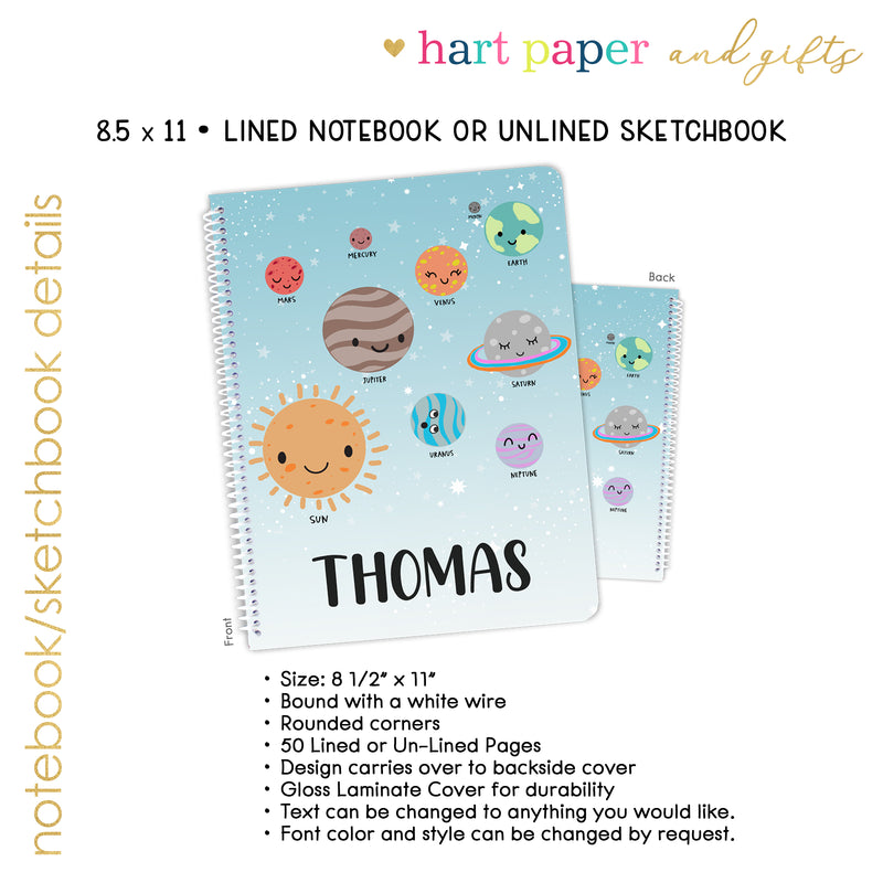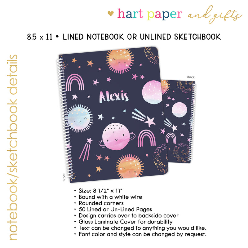 Planets Space Personalized Custom Notebook or Sketchbook • School Office Supplies