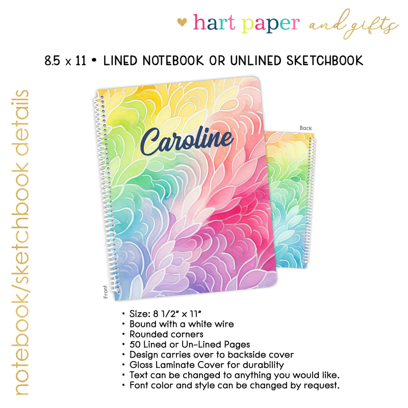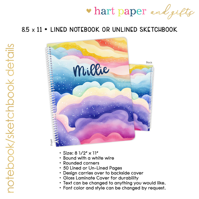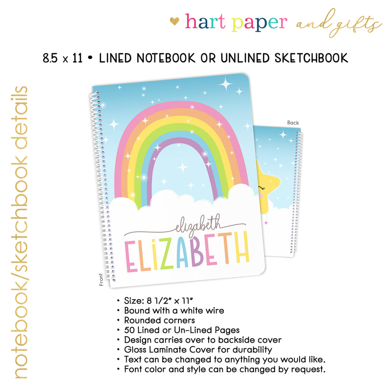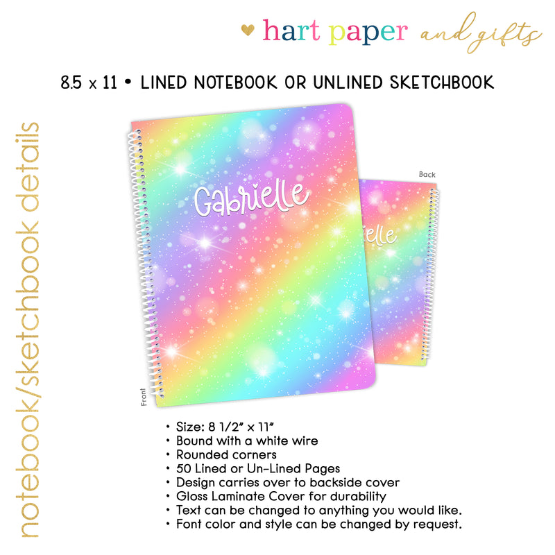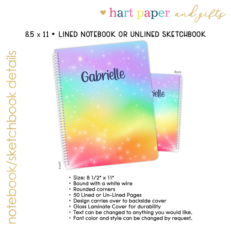 Rainbow Personalized Custom Notebook or Sketchbook • School Office Supplies