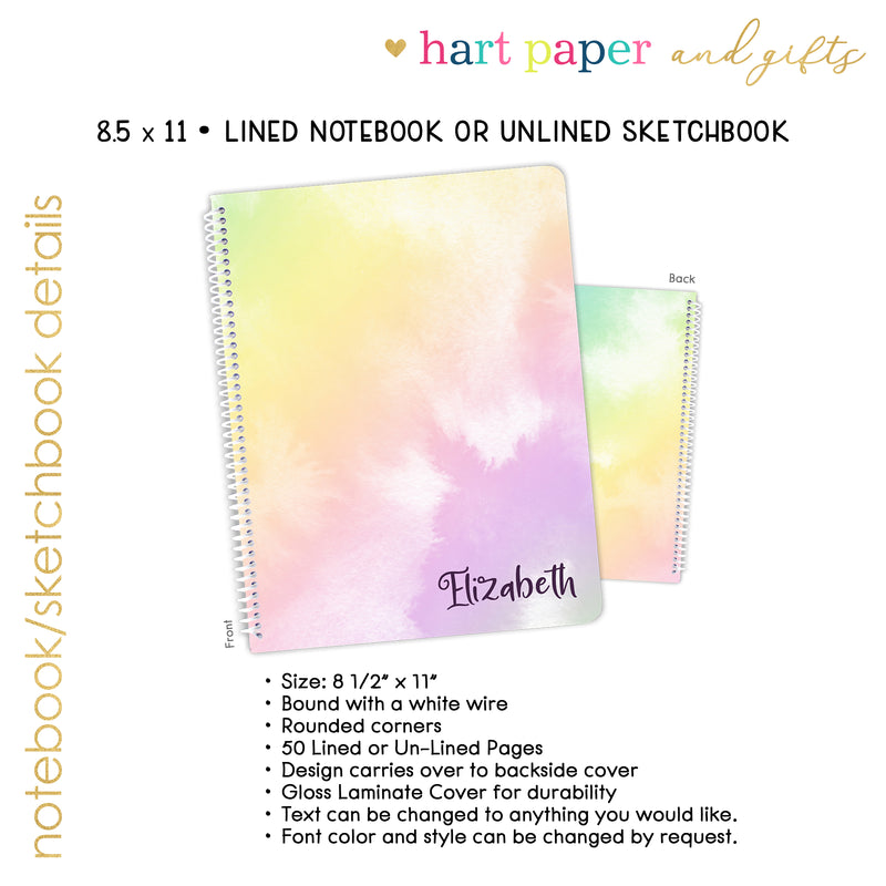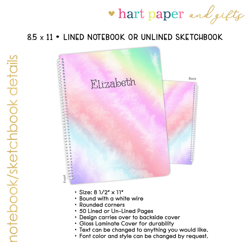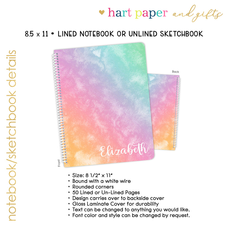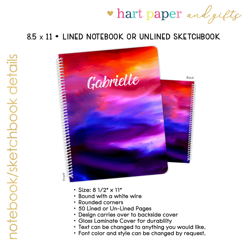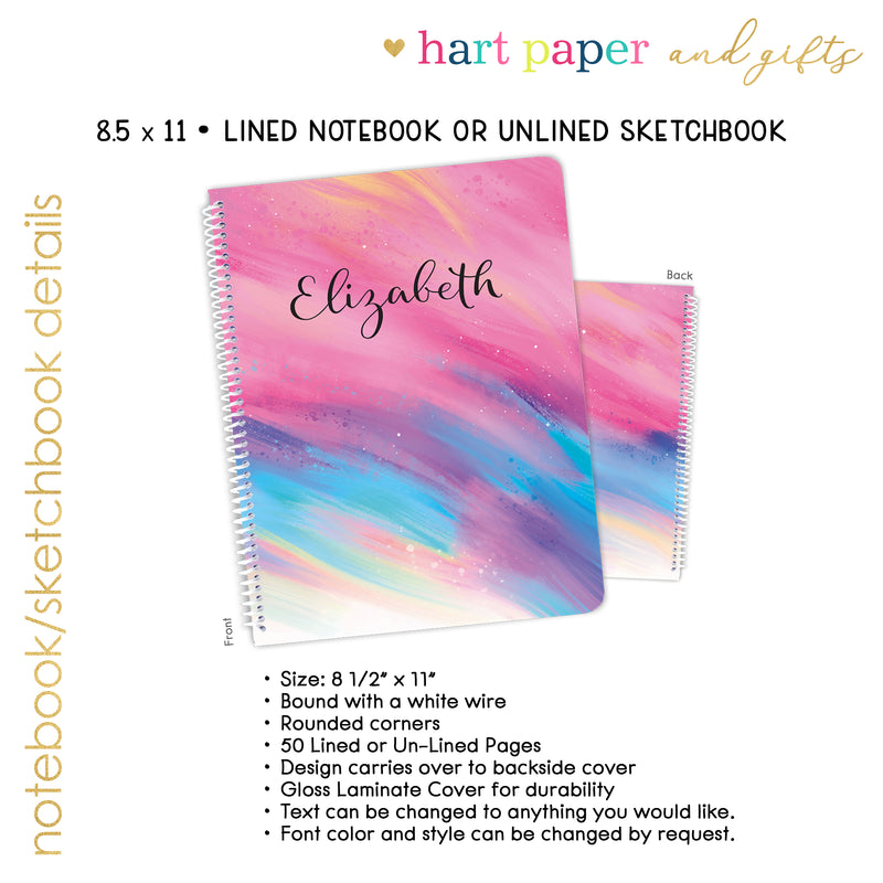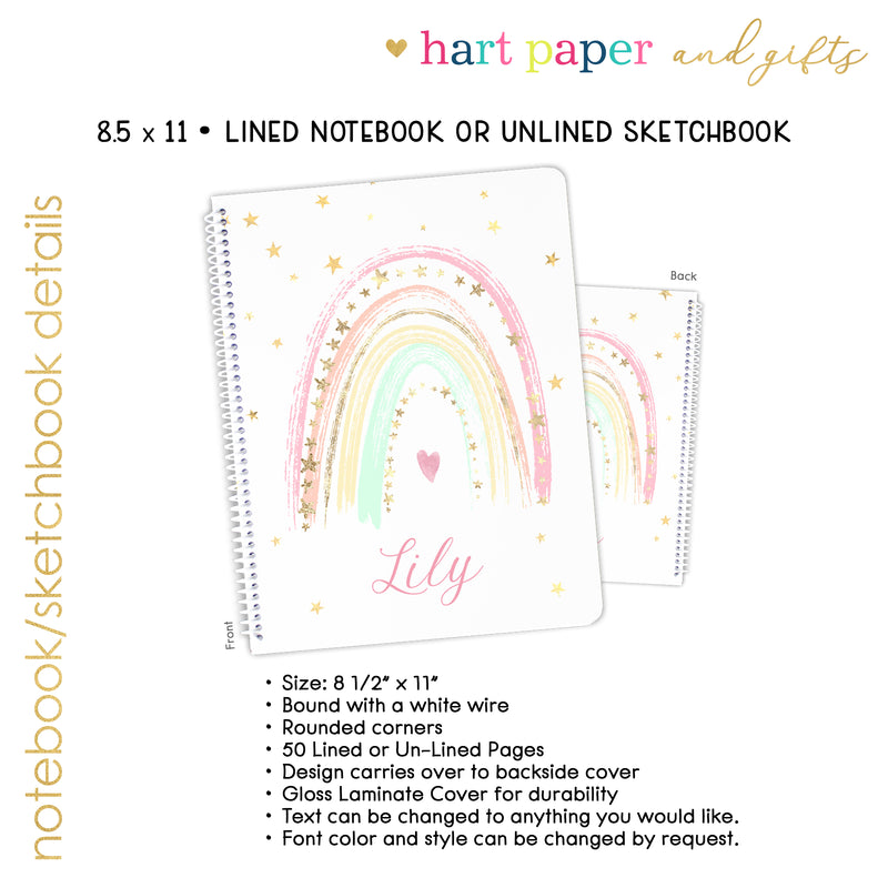 Rainbow Personalized Custom Notebook or Sketchbook • School Office Supplies