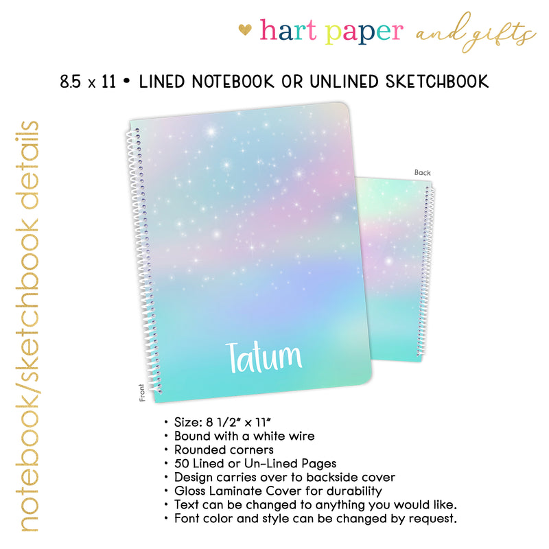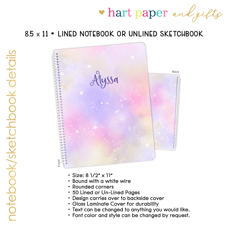 Rainbow Galaxy Stars Space Personalized Custom Notebook or Sketchbook • School Office Supplies