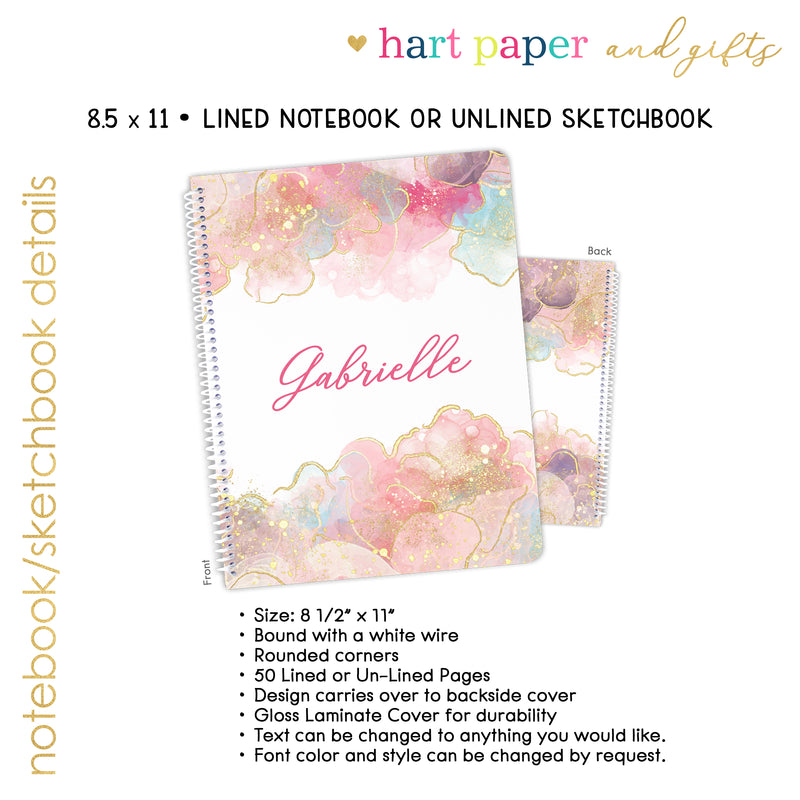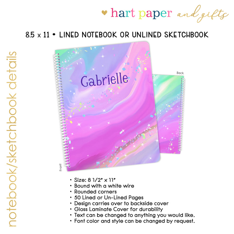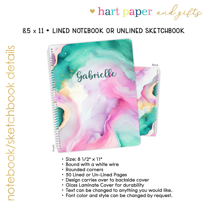 Rainbow Marble Personalized Custom Notebook or Sketchbook • School Office Supplies