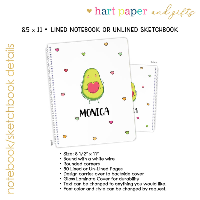 Avocado Personalized Custom Notebook or Sketchbook • School Office Supplies