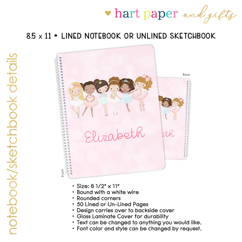 Ballerina Ballet Dance Personalized Custom Notebook or Sketchbook • School Office Supplies