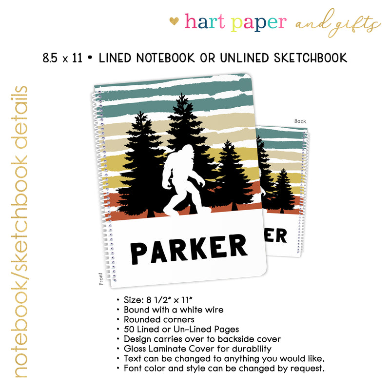 Bigfoot Personalized Custom Notebook or Sketchbook • School Office Supplies
