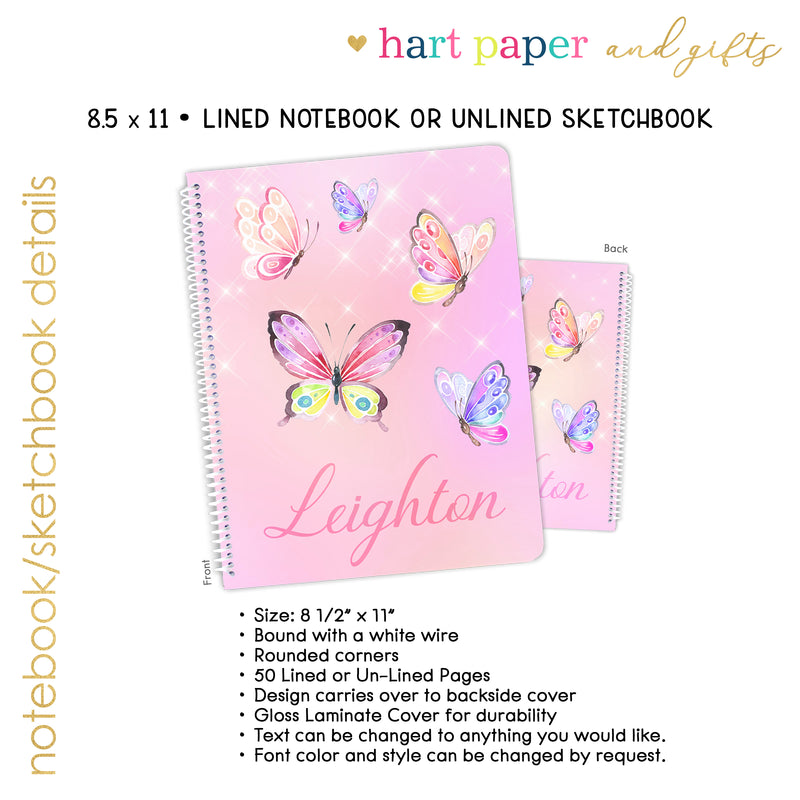Butterfly Personalized Custom Notebook or Sketchbook • School Office Supplies