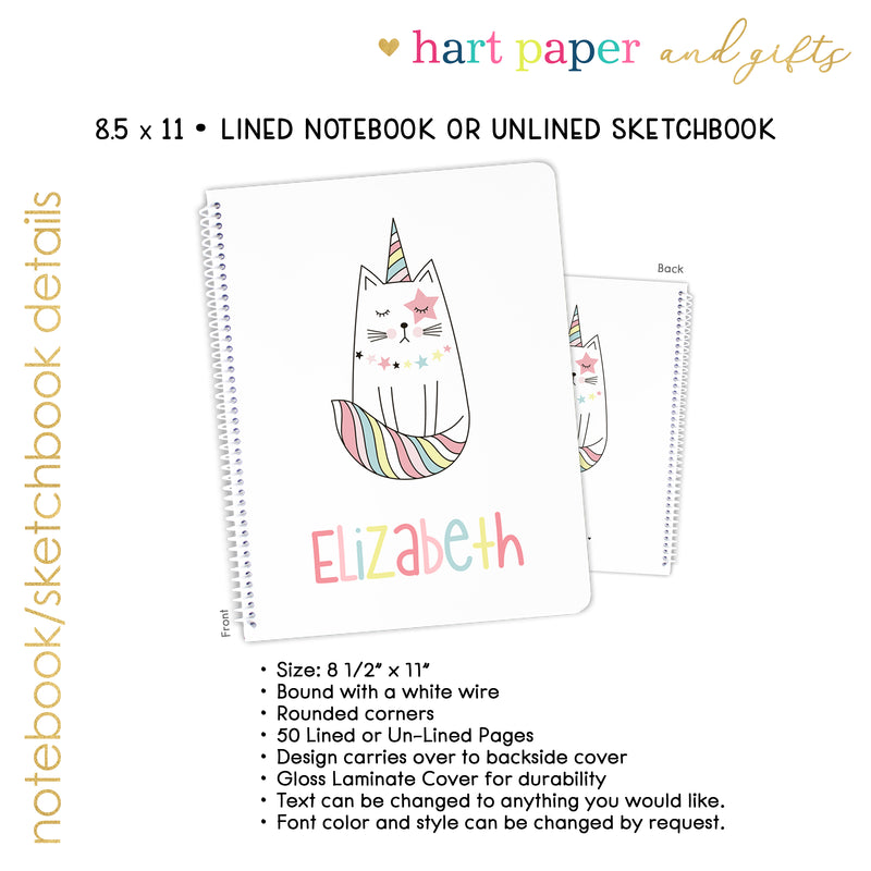 Caticorn Unicorn Cat Personalized Custom Notebook or Sketchbook • School Office Supplies