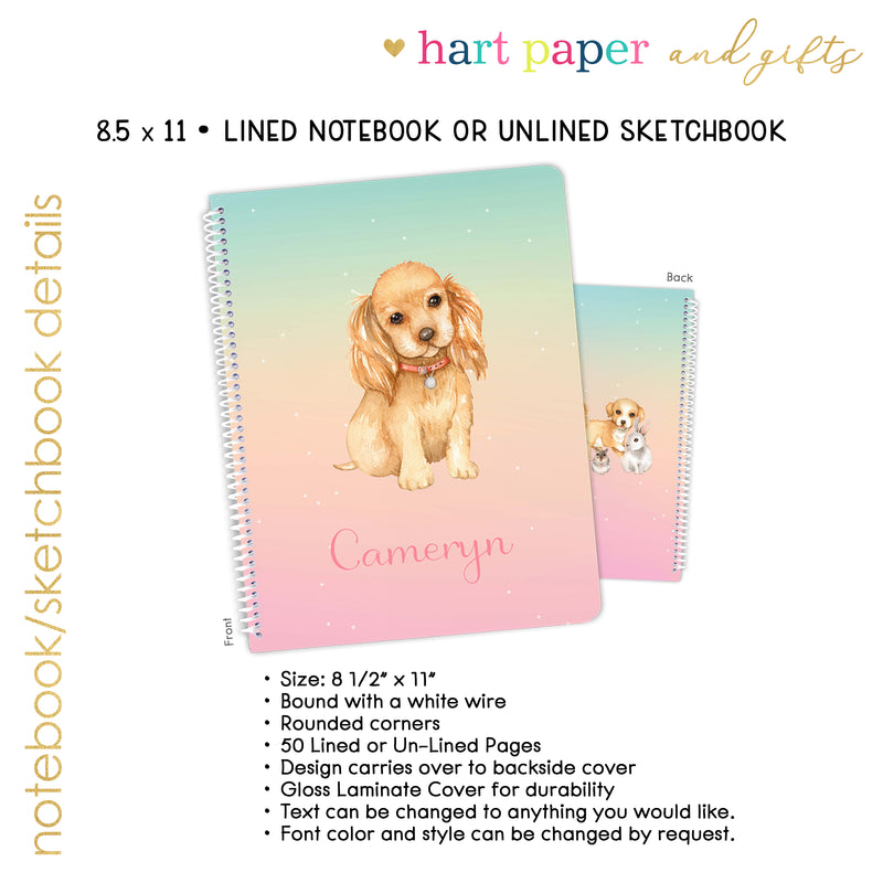 Rainbow Dog Puppy Personalized Custom Notebook or Sketchbook • School Office Supplies