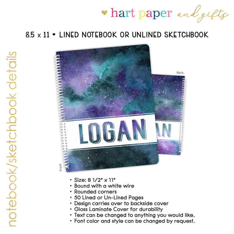 Galaxy Stars Space Personalized Custom Notebook or Sketchbook • School Office Supplies