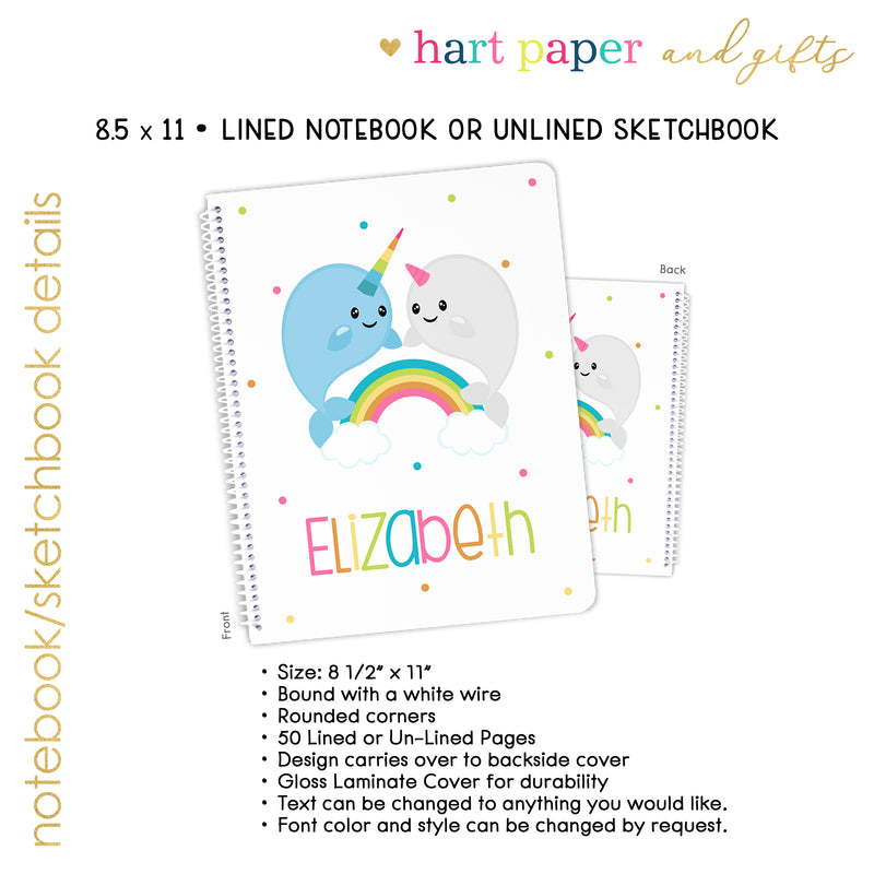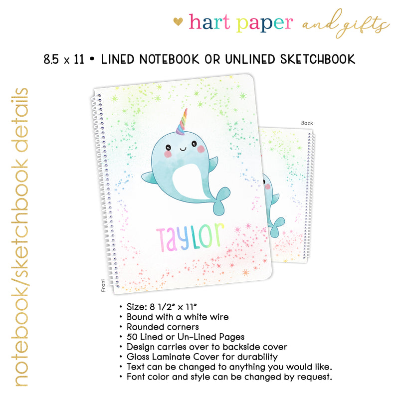 Narwhal Personalized Custom Notebook or Sketchbook • School Office Supplies