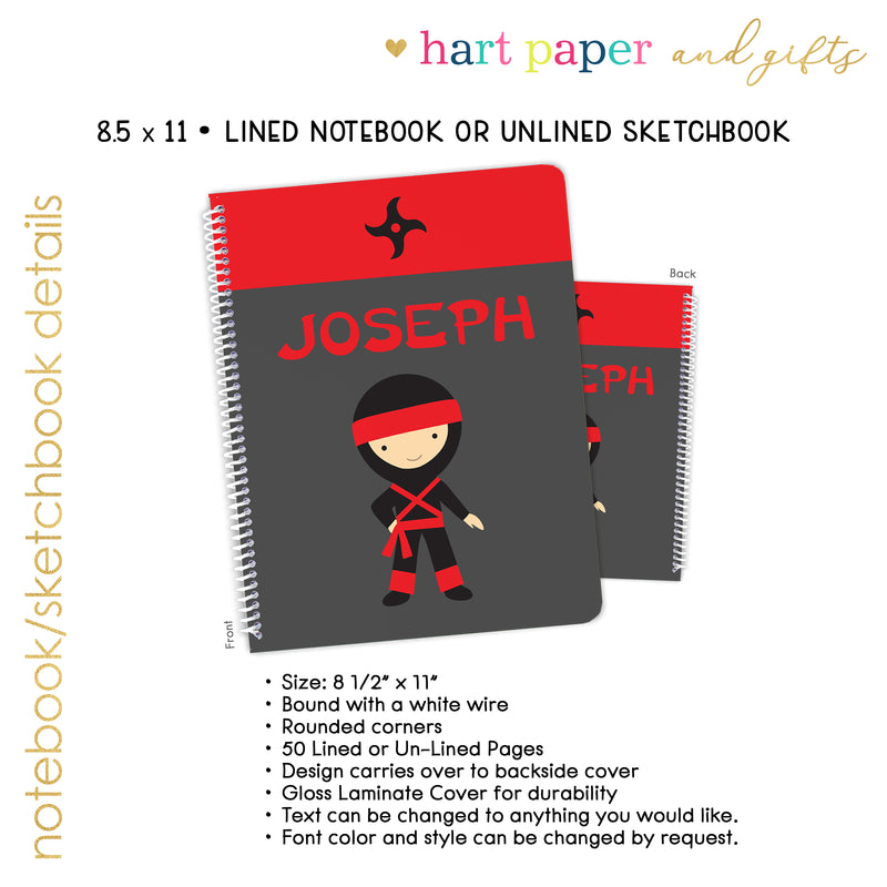 Ninja Karate Personalized Custom Notebook or Sketchbook • School Office Supplies