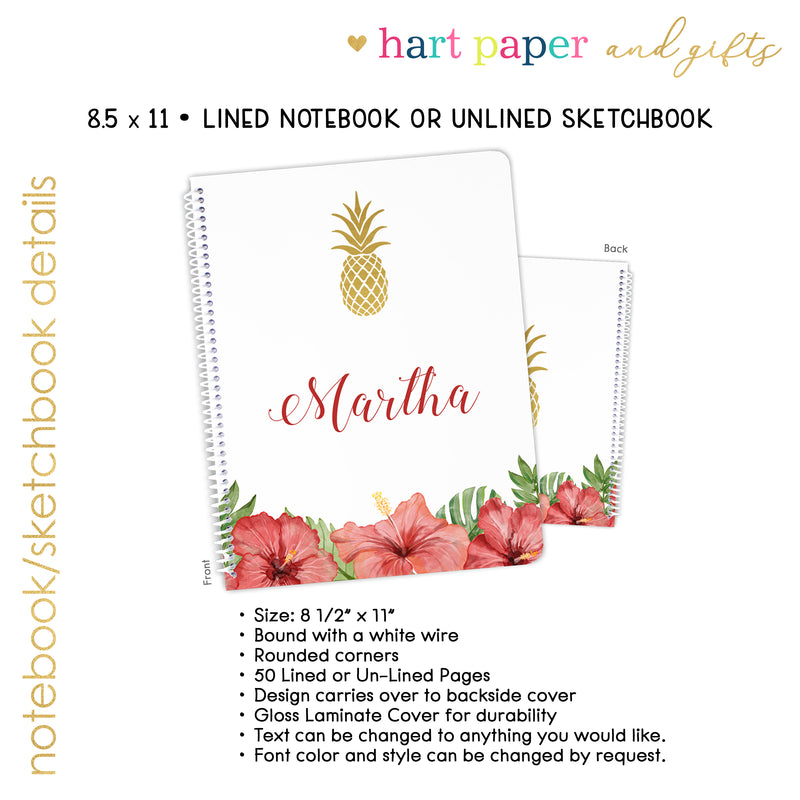 Pineapple Personalized Custom Notebook or Sketchbook • School Office Supplies