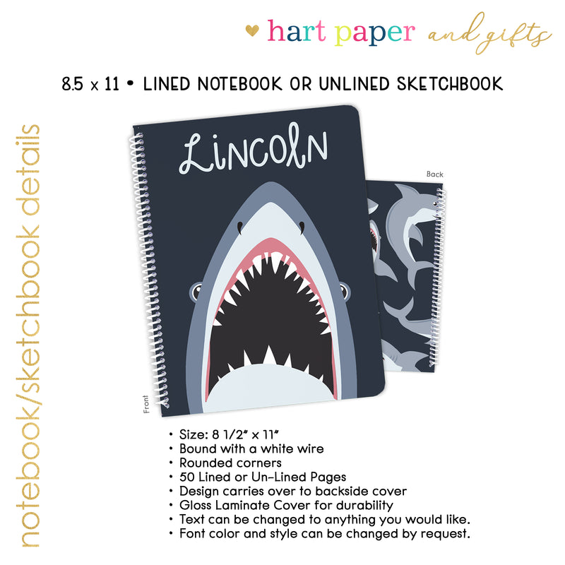 Shark Personalized Custom Notebook or Sketchbook • School Office Supplies