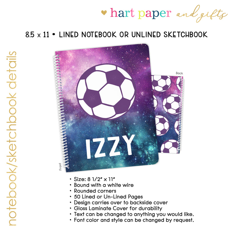 Galaxy Soccer Ball Personalized Custom Notebook or Sketchbook • School Office Supplies